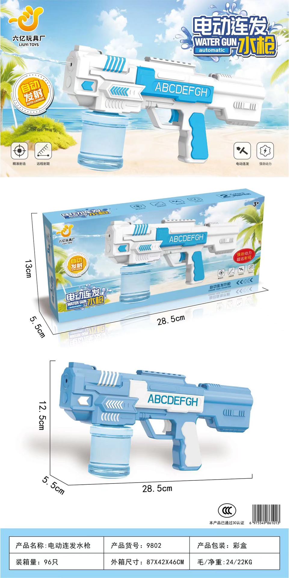 신제품 어린이 여름 완전 자동 연속 물총 공간 전기 연속 물총 소년 물 장난감스토어 가기