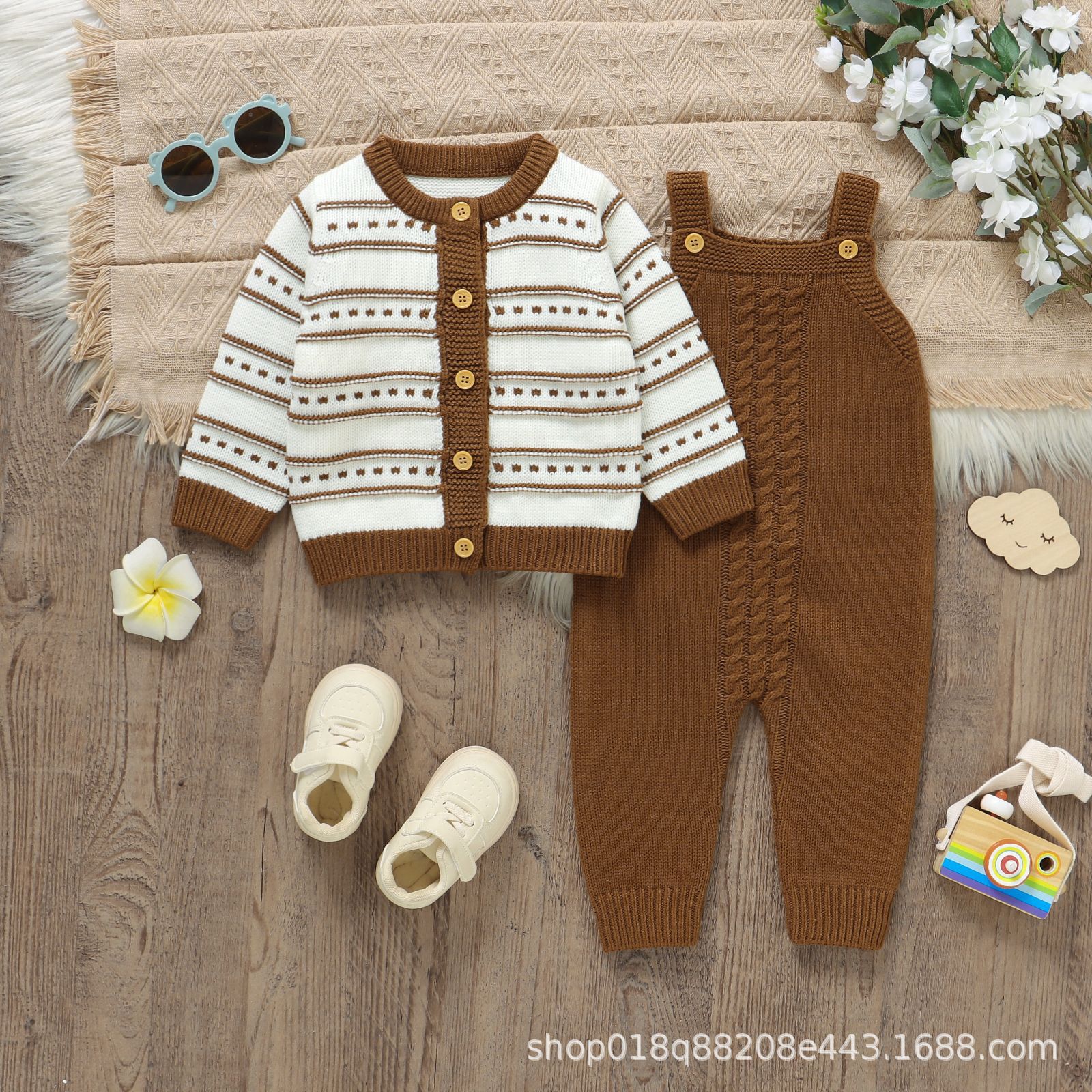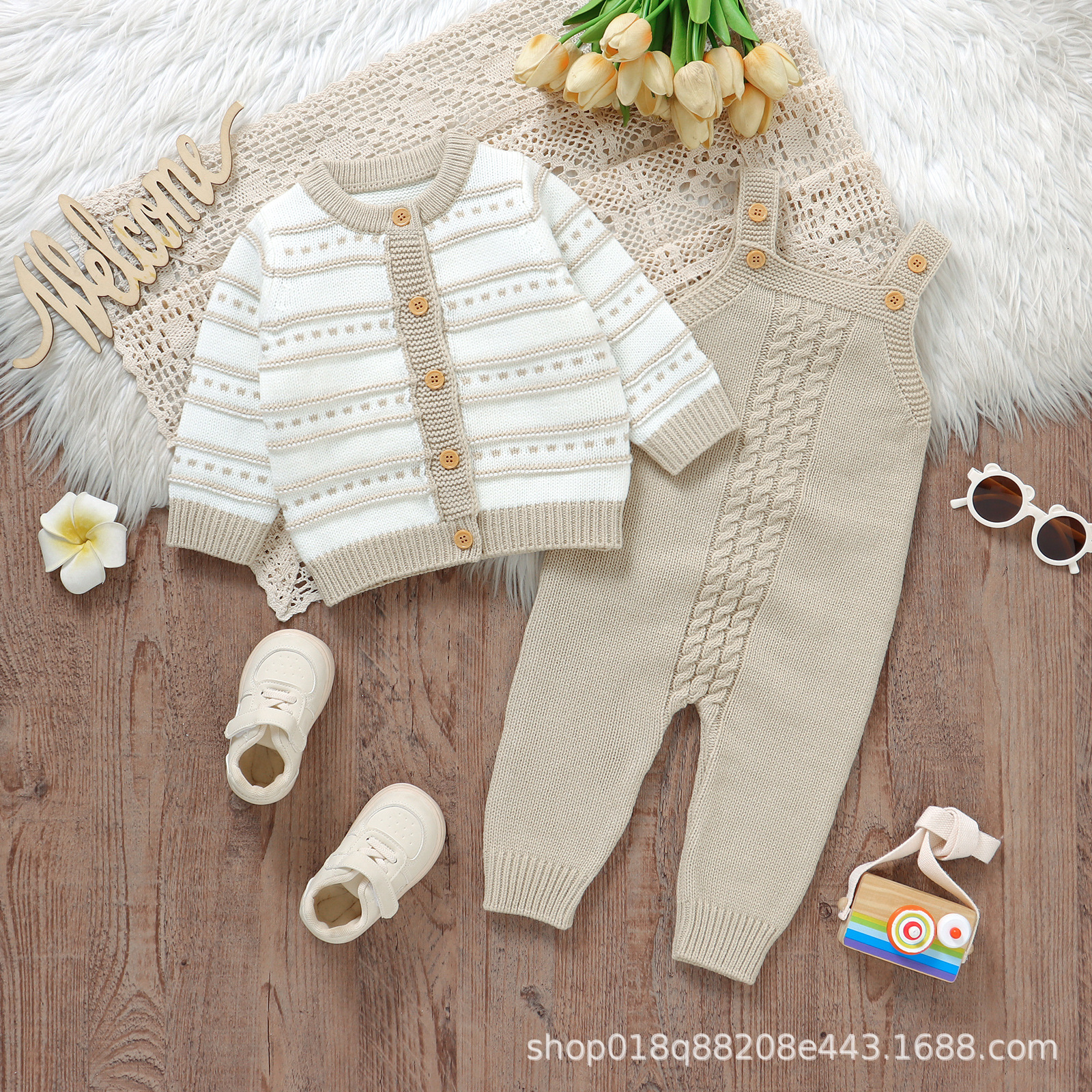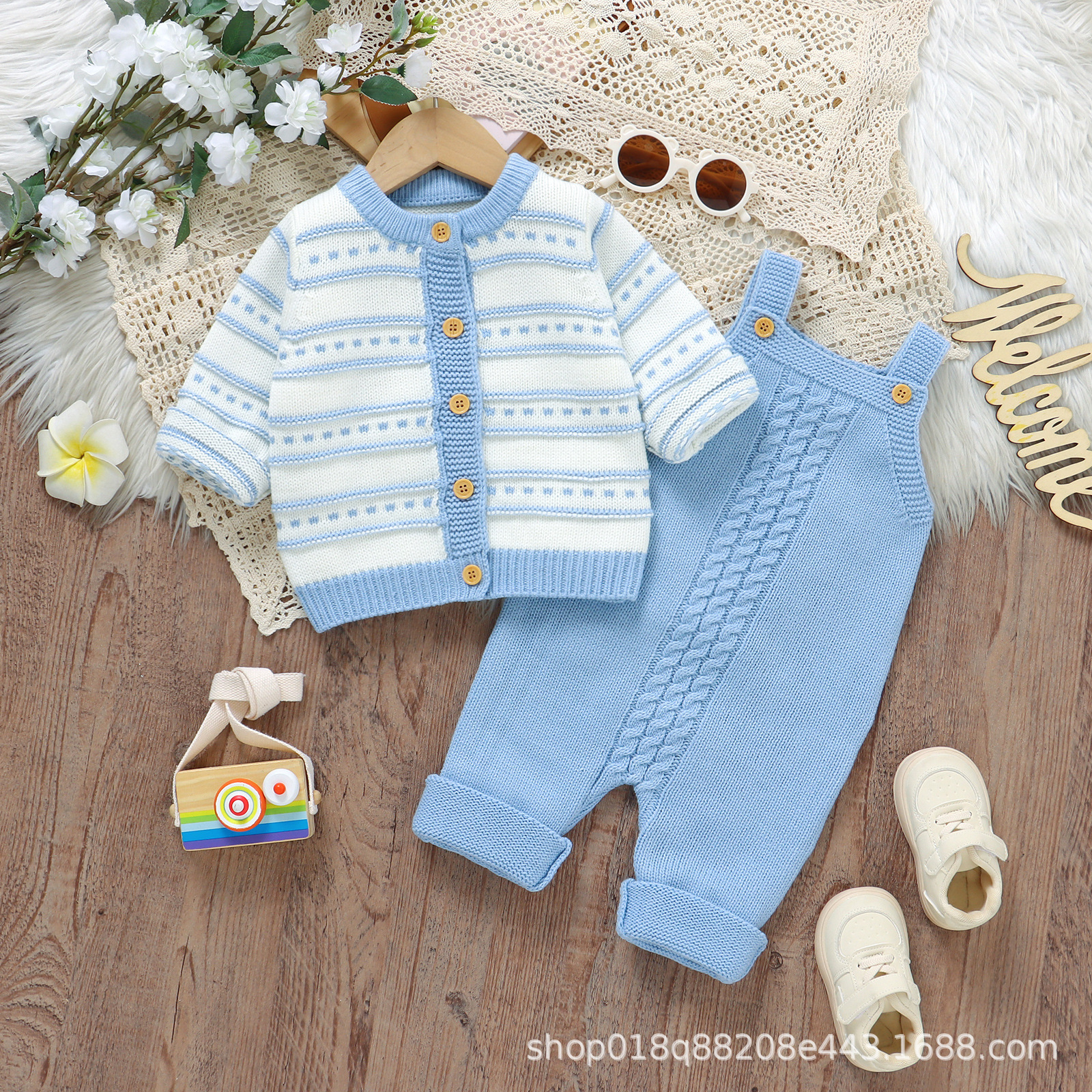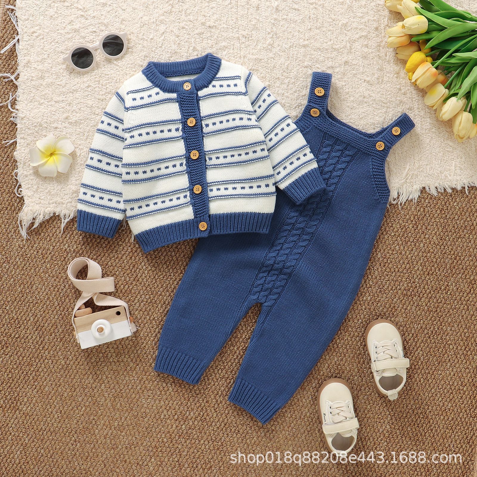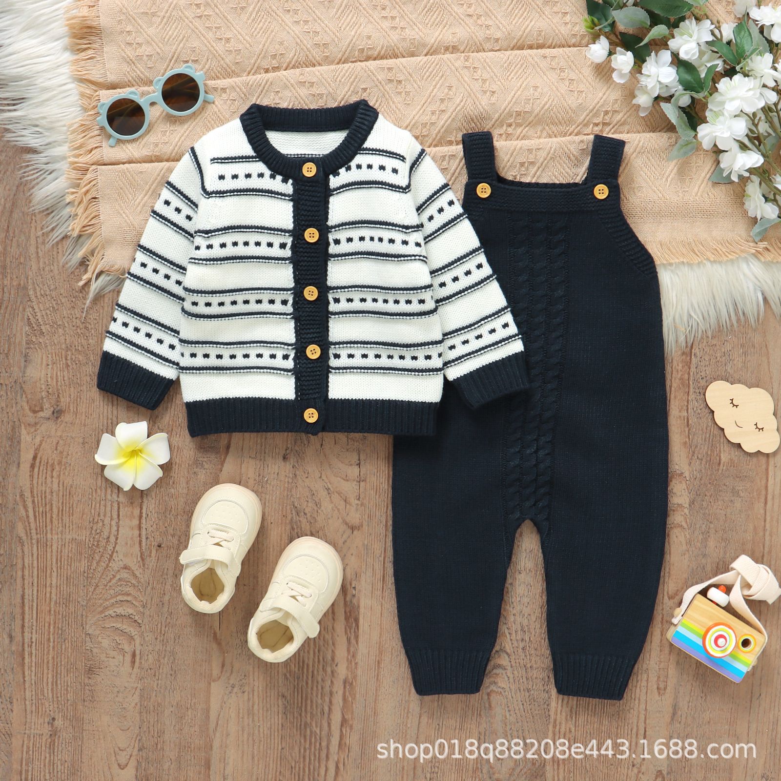 유아용 점프수트, 남아용 서스펜더, 롬퍼, 니트 가디건, 스트라이프 스웨터 투피스 세트스토어 가기