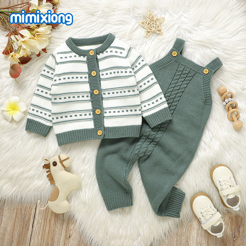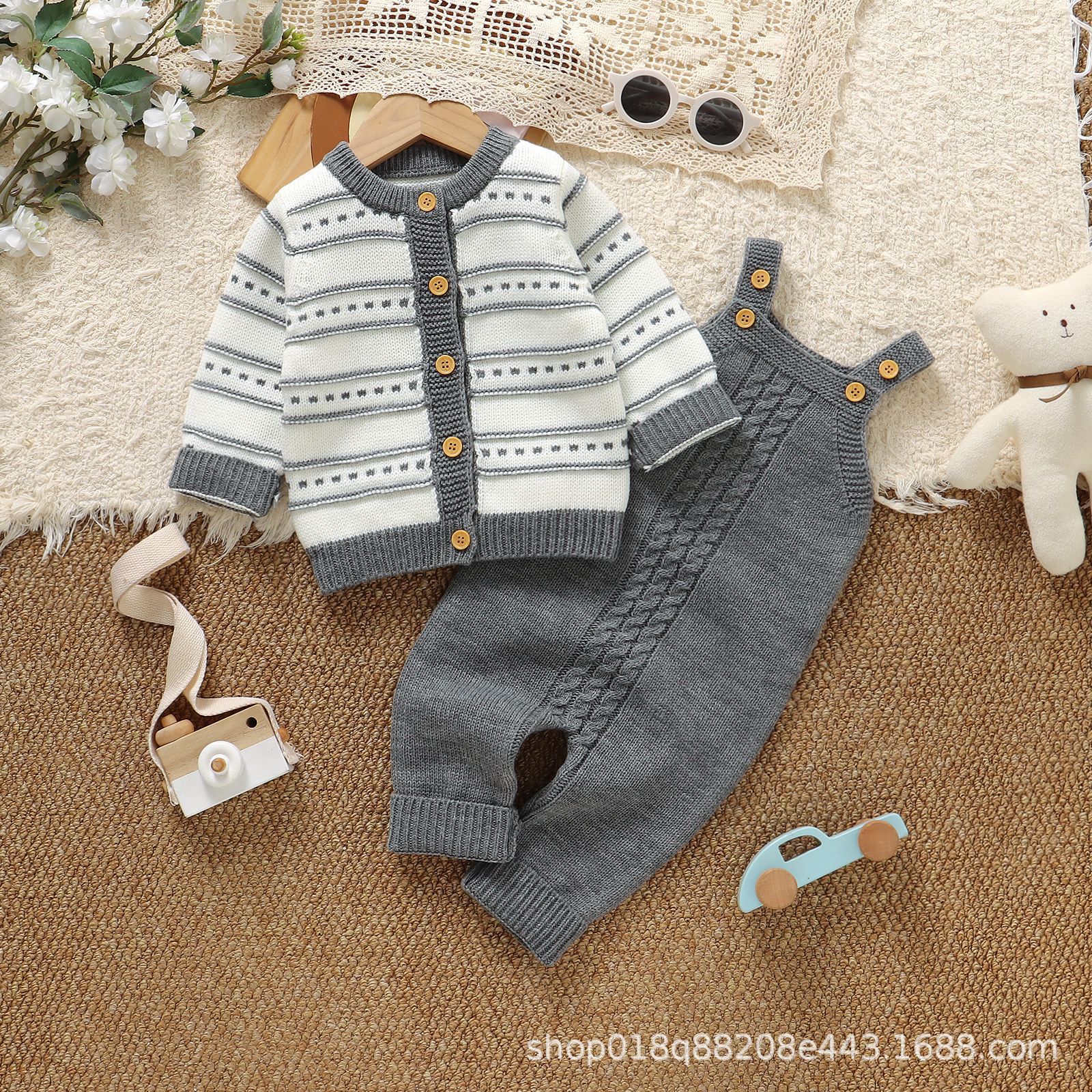 유아용 점프수트, 남아용 서스펜더, 롬퍼, 니트 가디건, 스트라이프 스웨터 투피스 세트