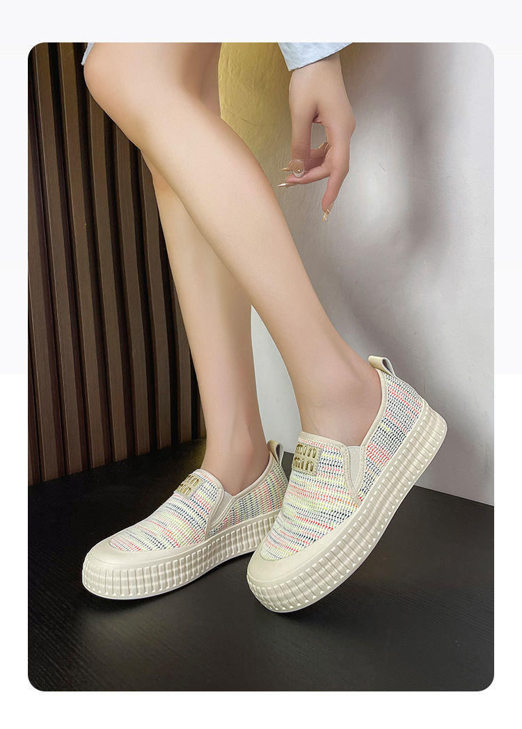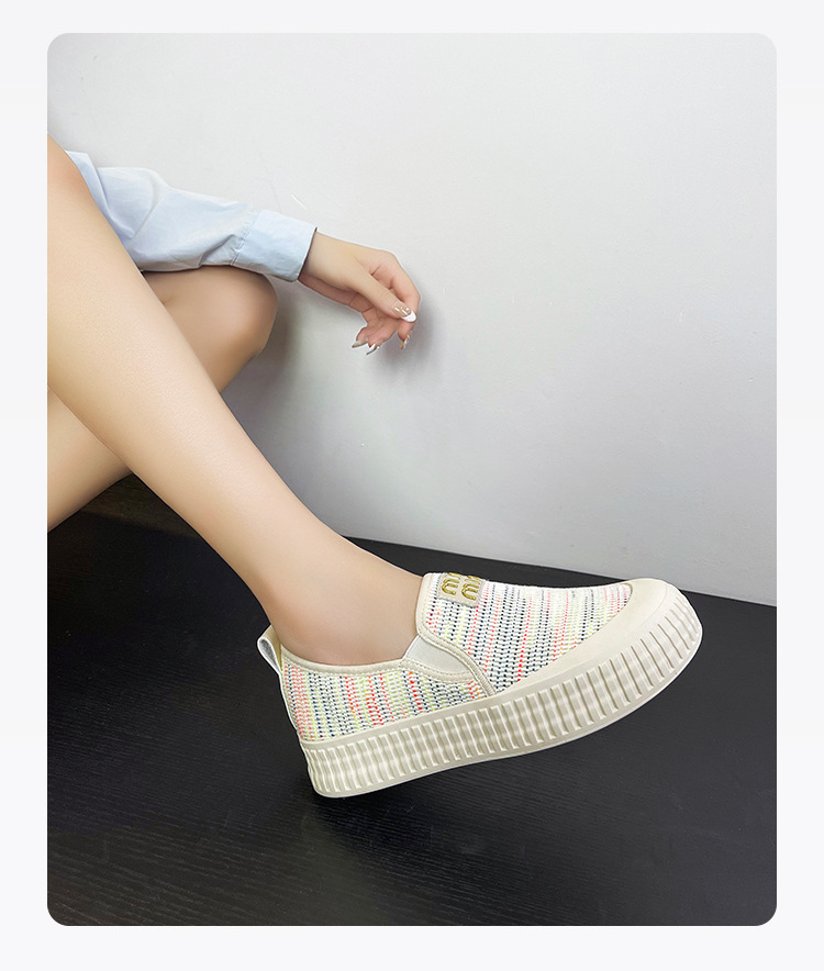 여성을위한 두꺼운 밑창 운동화 2025 봄, 가을 새로운 스타일 다목적 패션 가볍고 편안한 린넨 캔버스 캐주얼 비스킷 신발스토어 가기