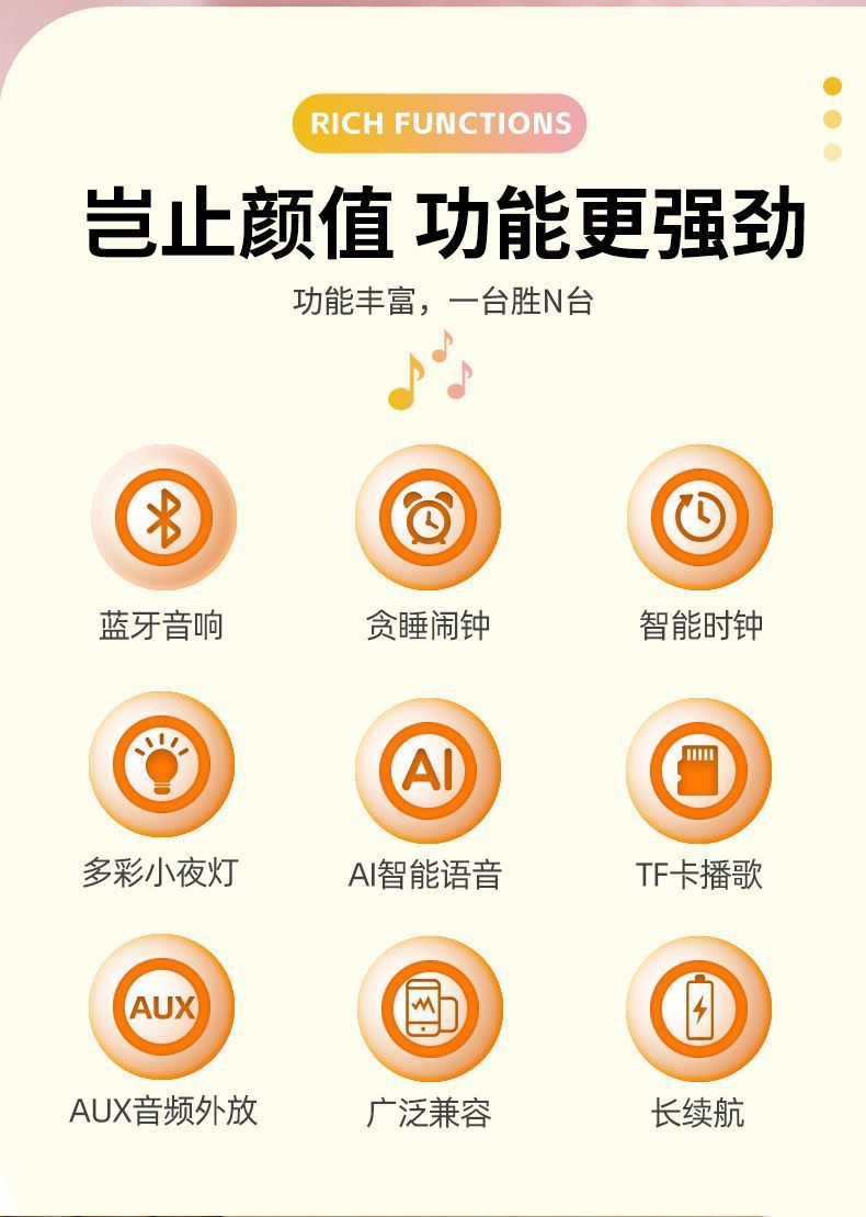 • R3 스마트 버전: 듀얼 알람 시계 + 1200mAh + 스마트 노래 요청