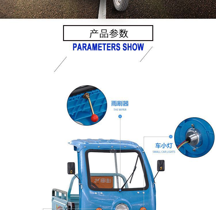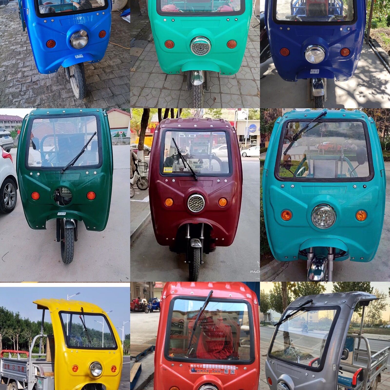 전기 삼륜차 차고, 차양, 차양, 운전실 앞 차고, 배터리 차고, 플라스틱 앞창