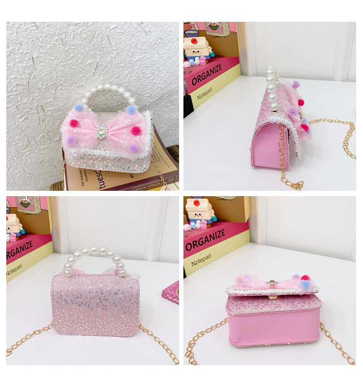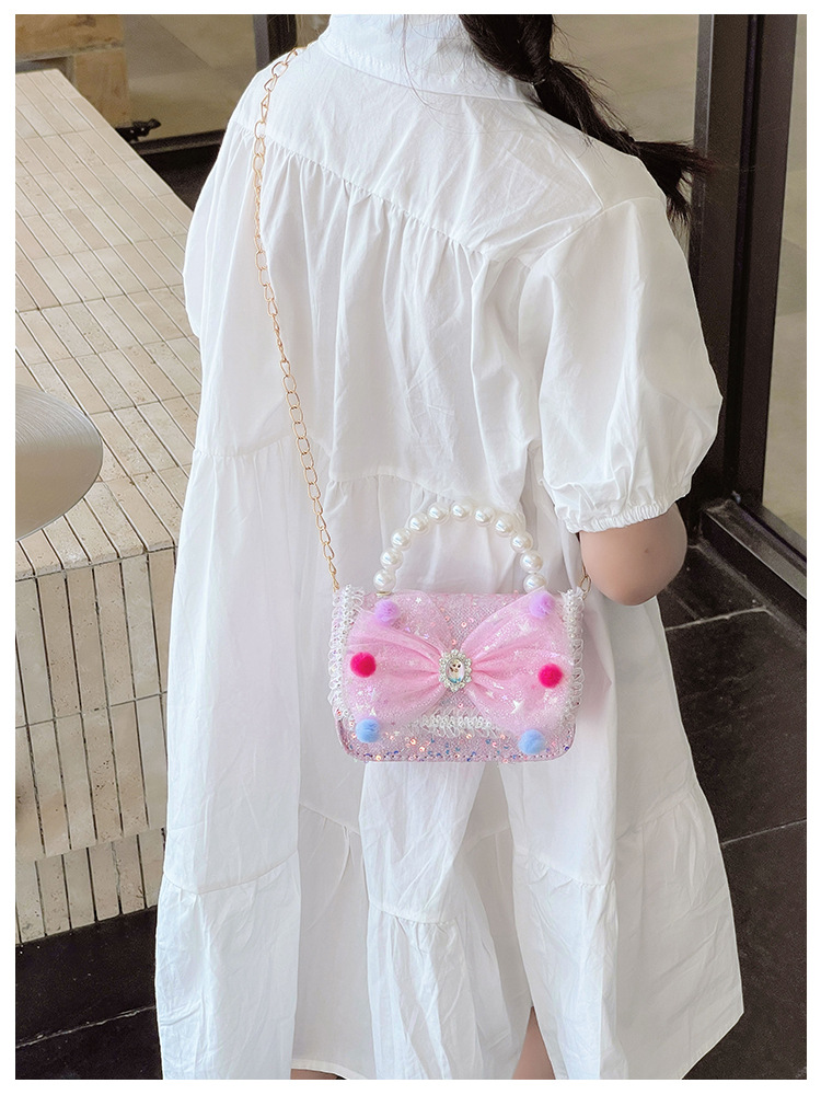 어린이 가방 봄 패션 공주 소녀 어깨 크로스 바디 가방 세련되고 귀여운 어린 소녀 가방 진주 핸드백