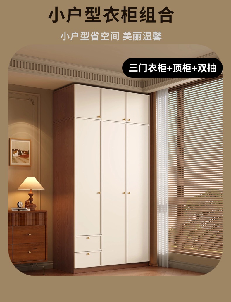단단한 나무 옷장 홈 침실 작은 아파트 중세 스타일 어린이 두꺼운 16mm 뒷면 패널 입구 보관 2025 새로운 스타일스토어 가기