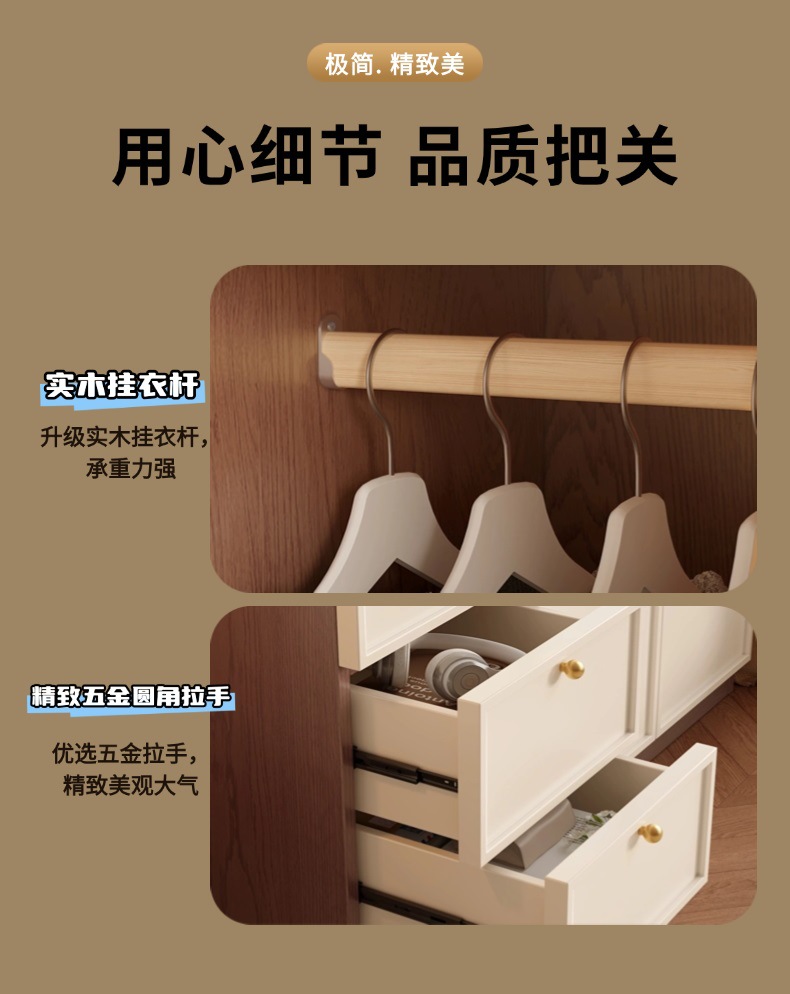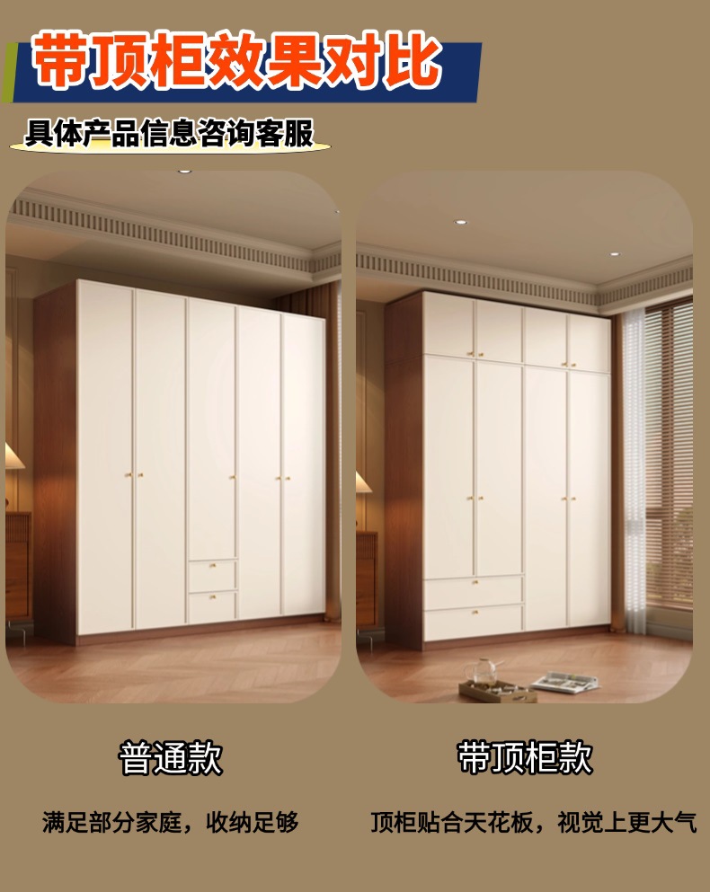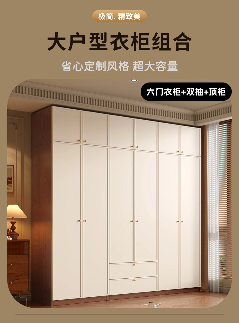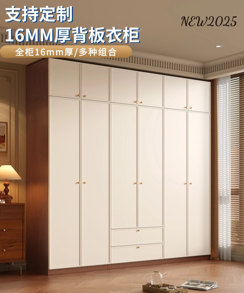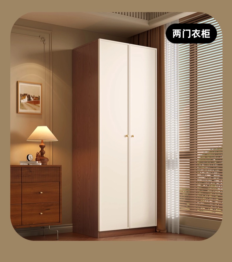 단단한 나무 옷장 홈 침실 작은 아파트 중세 스타일 어린이 두꺼운 16mm 뒷면 패널 입구 보관 2025 새로운 스타일