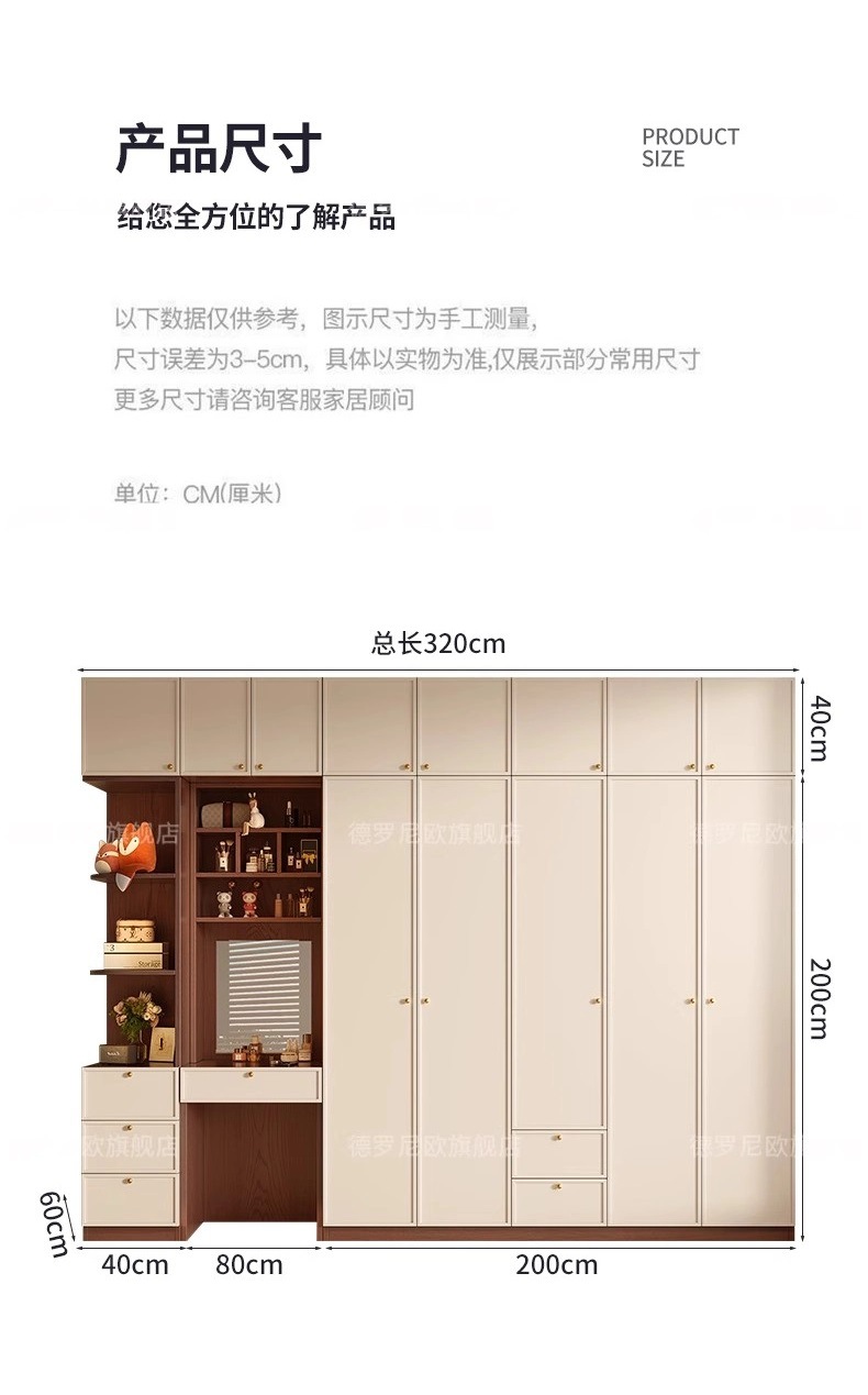 • 2.0m 옷장 + 상부장 + 화장대 + 코너장