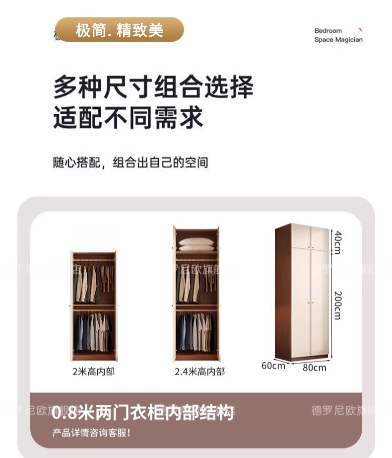 • 0.8m 옷장 + 상단 수납장(두꺼운 후면 패널 16개/깊이 60)