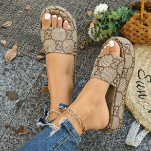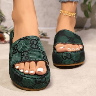 여성용 크로스보더 대형 두꺼운 밑창 슬리퍼 2025 여름 신작 유럽과 미국의 프린트 플랫폼 슬리퍼 도매스토어 가기