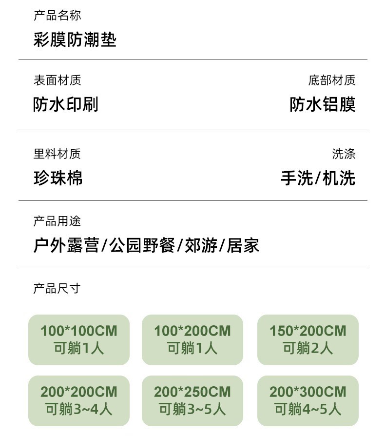 두꺼운 컬러 필름 필드 캠핑 매트 야외 피크닉 매트 피크닉 매트 매트 바닥 매트 기숙사 방습 매트리스 공장스토어 가기