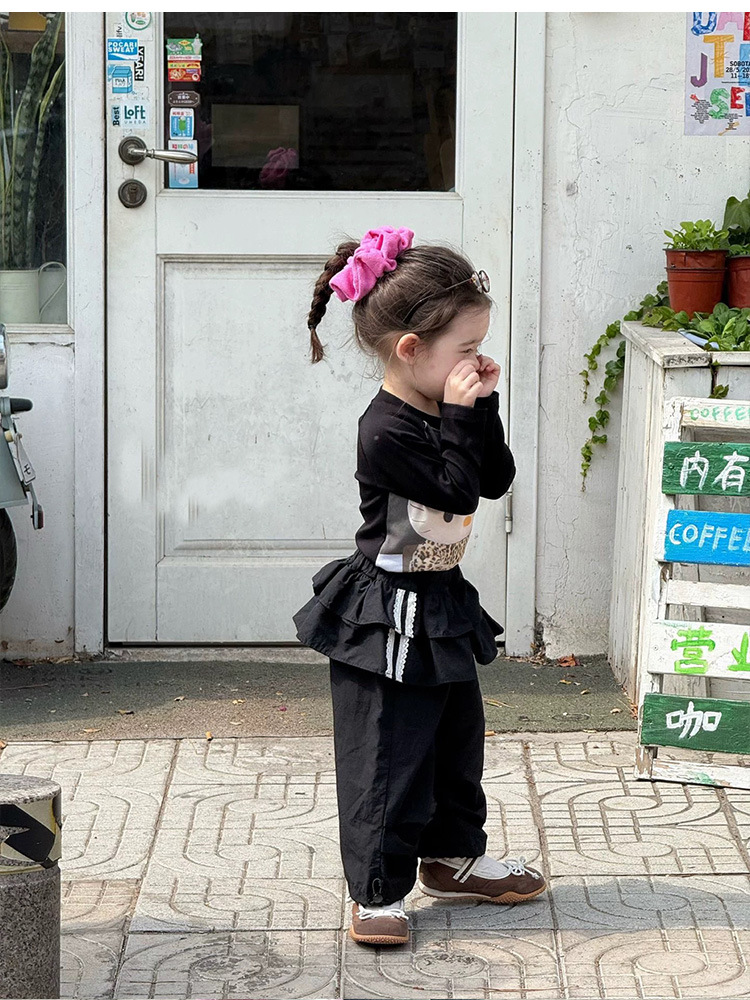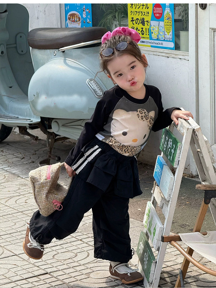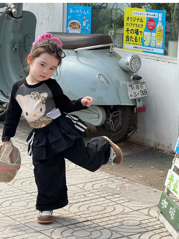 여아용 봄 와이드 팬츠 2026 신상 아동 캐주얼 팬츠 유아용 루즈핏 카고 팬츠 블랙 스트라이프 팬츠
