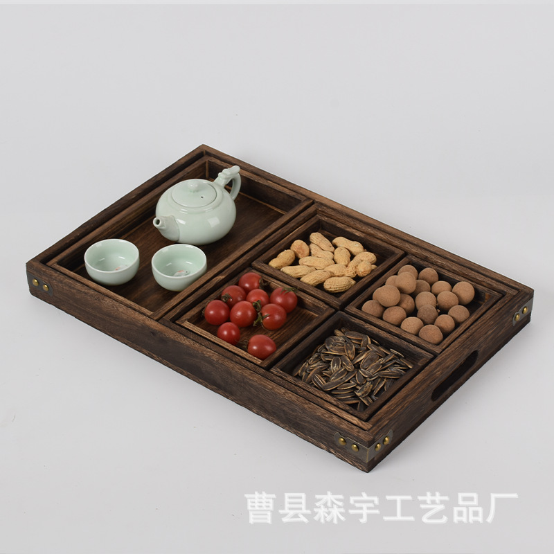 원목 티 트레이, 수납 트레이, 티 트레이, 과일 트레이, 스낵 트레이, 사각형 그리드, 나무 9각형 그리드, 건과일 트레이