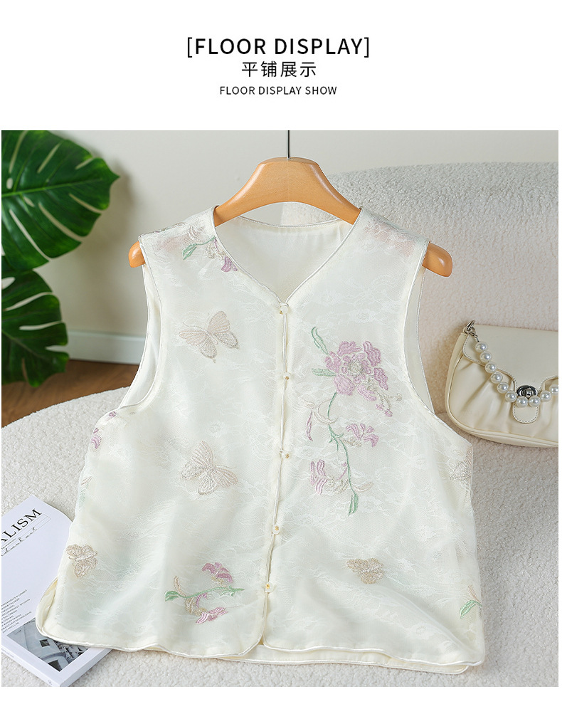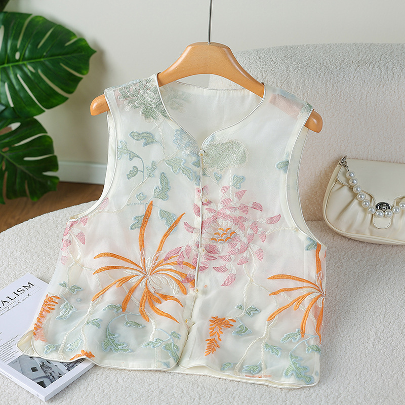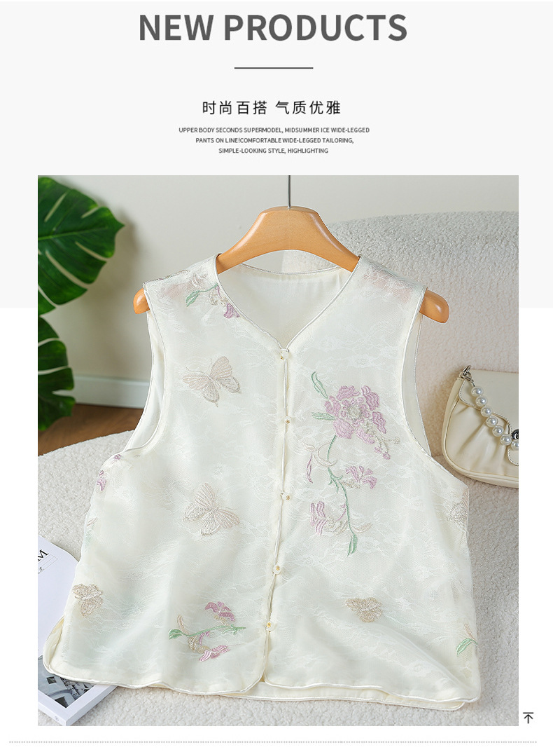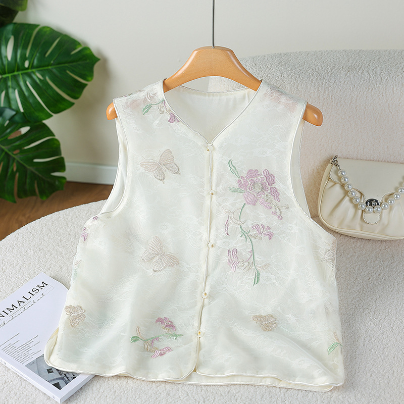 라이브 방송 인기 새로운 중국 스타일 민족 스타일 조끼 여성 여름 복고풍 버튼 자수 조끼 탑 조끼