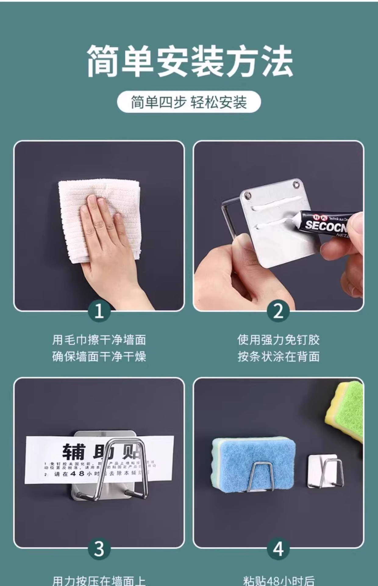 • 스테인레스 스틸 [1팩] 접착 뒷면 포함, 구멍을 뚫을 필요 없음