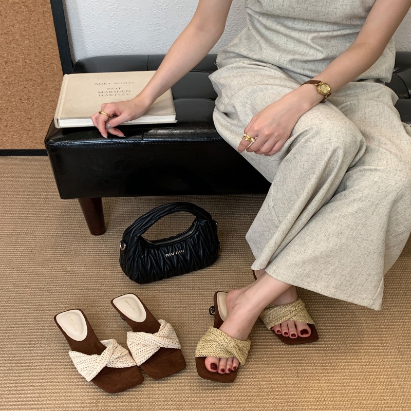 2025년 여름 여성을 위한 케루리 스타일 브라운 하이힐 샌들, 아름다운 직조 리조트 스타일 슬리퍼스토어 가기