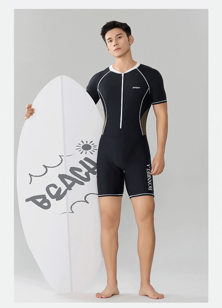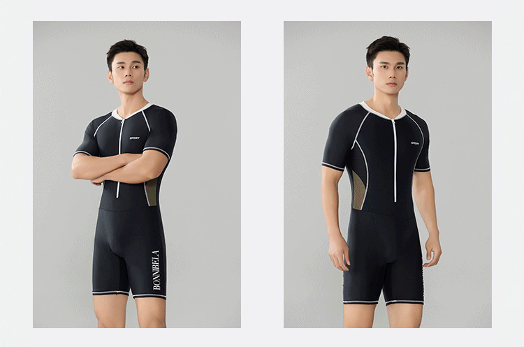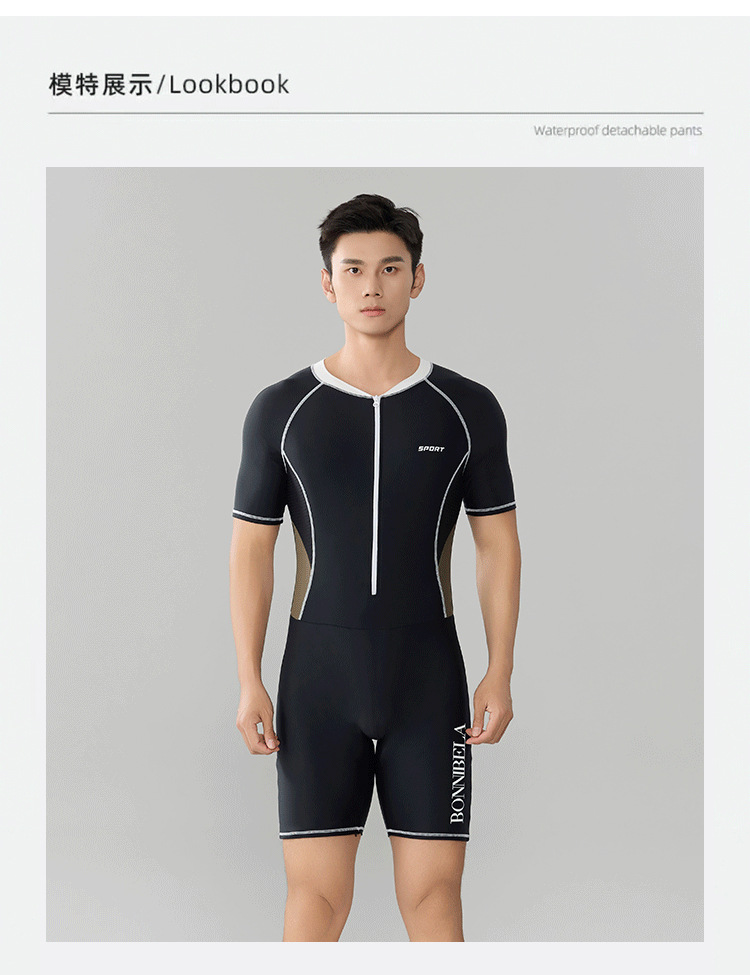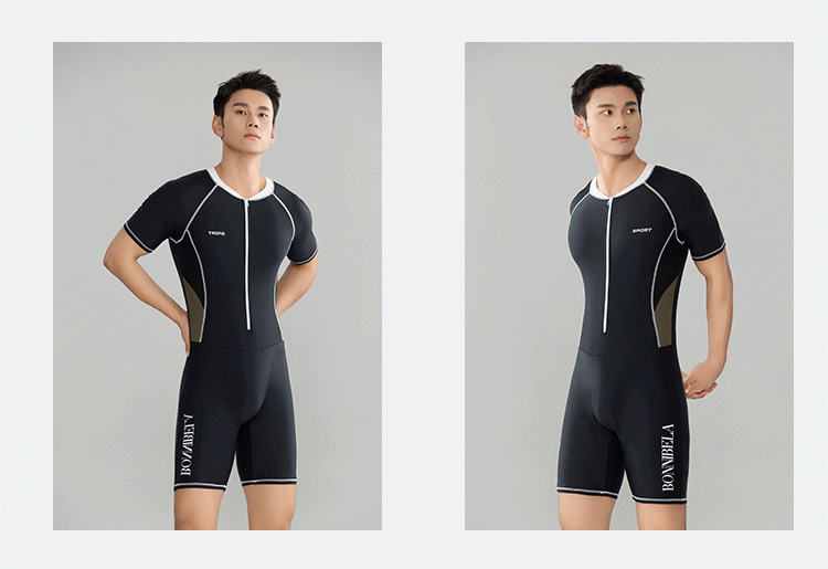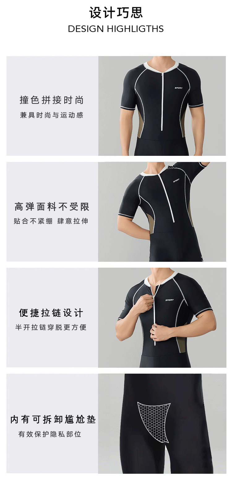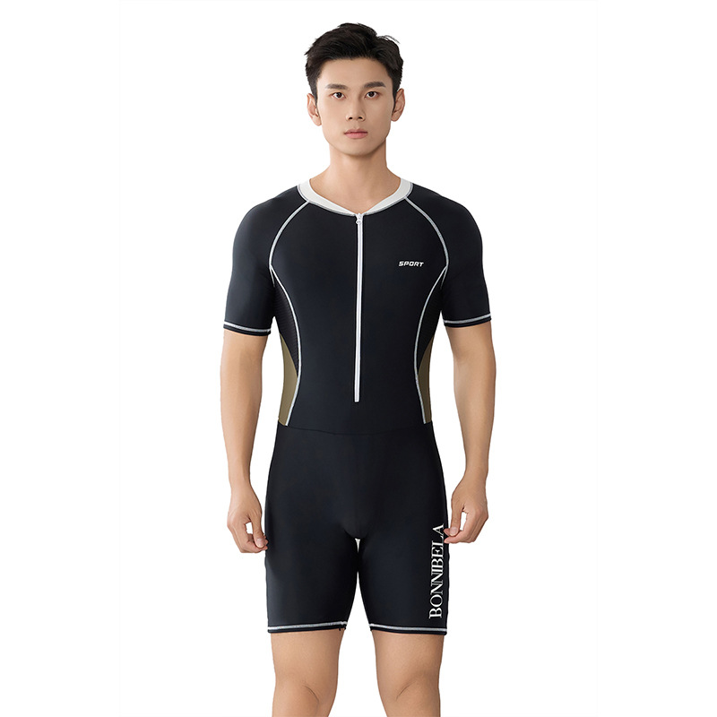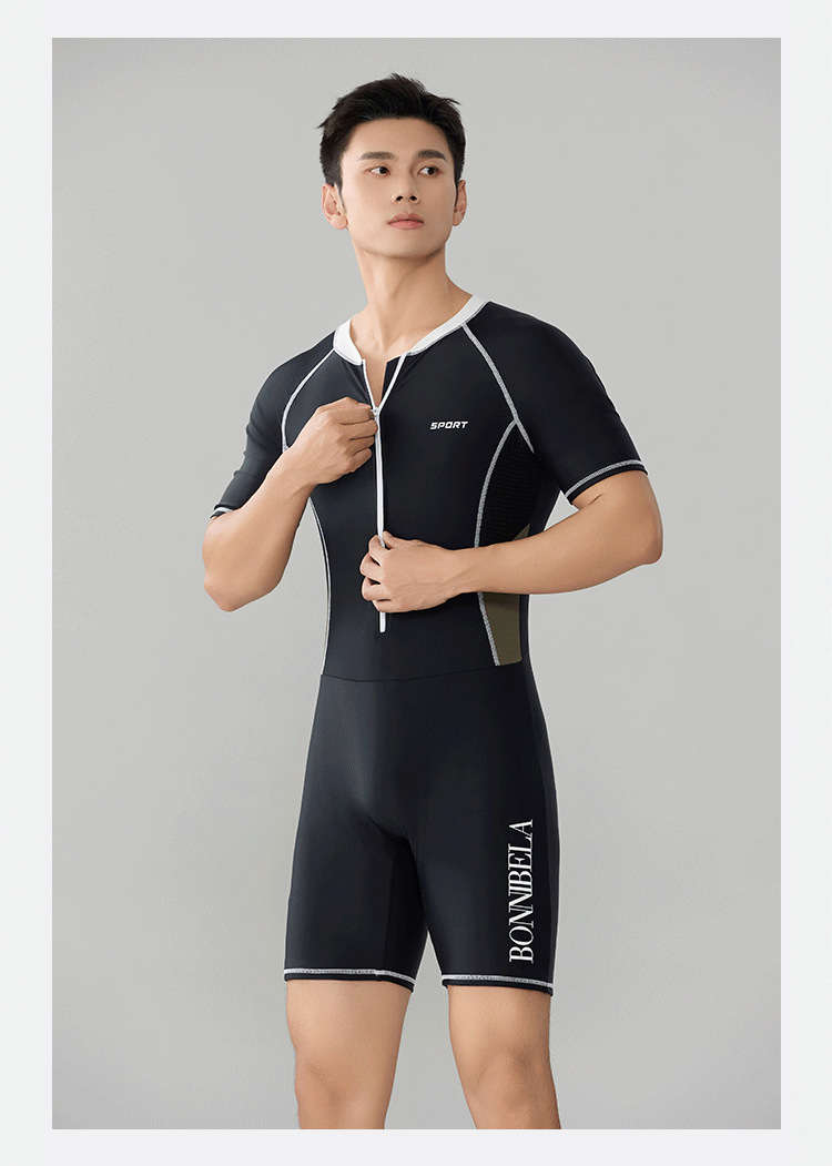 Trisass 새로운 남성용 원피스 수영복, 당황스러운 방지, 전문 스포츠 레이싱 반팔 5부 바지, 자외선 차단, 대형 사이즈스토어 가기