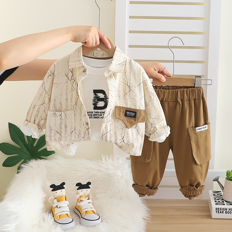 소년 가을 의류 세트 새로운 유행 및 잘 생긴 아동 의류 아기 1-5 세 봄, 가을 긴팔 셔츠 3 피스 세트스토어 가기