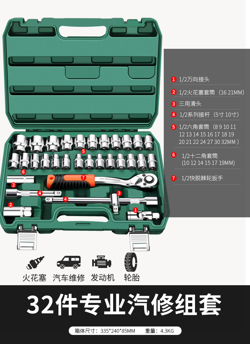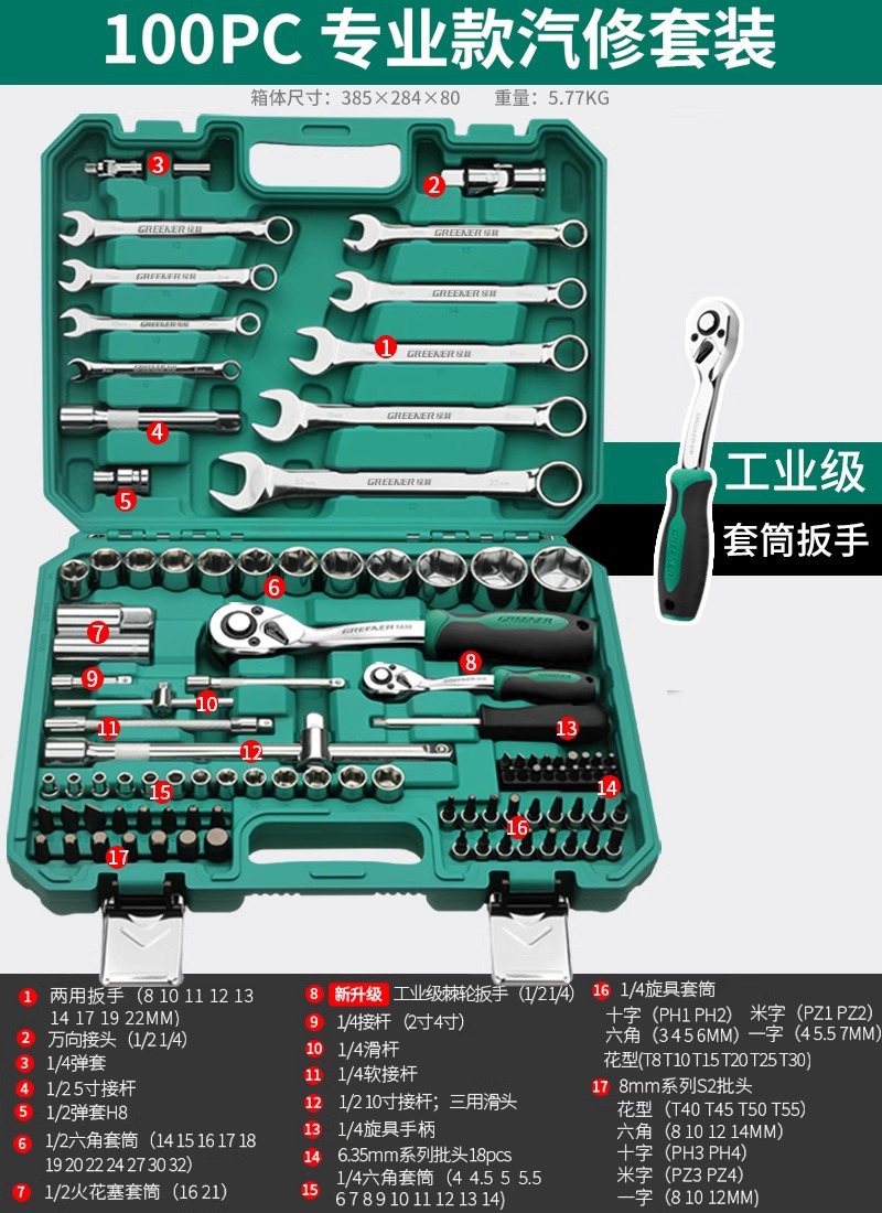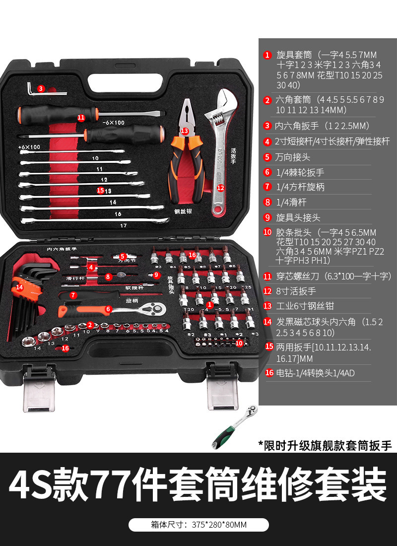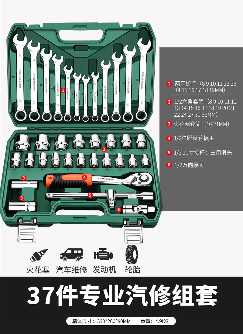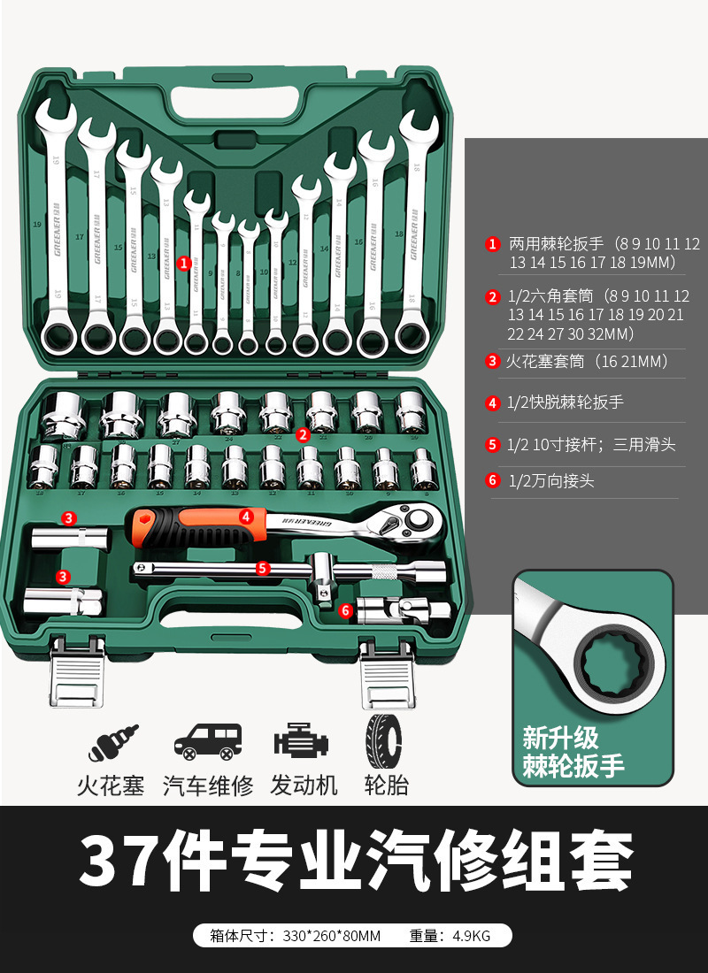• 업그레이드된 72톱니 곡선 핸들 자동 수리 37개(업그레이드된 래칫 렌치)