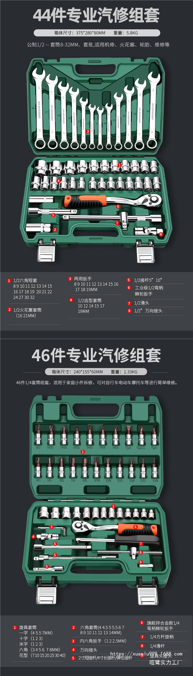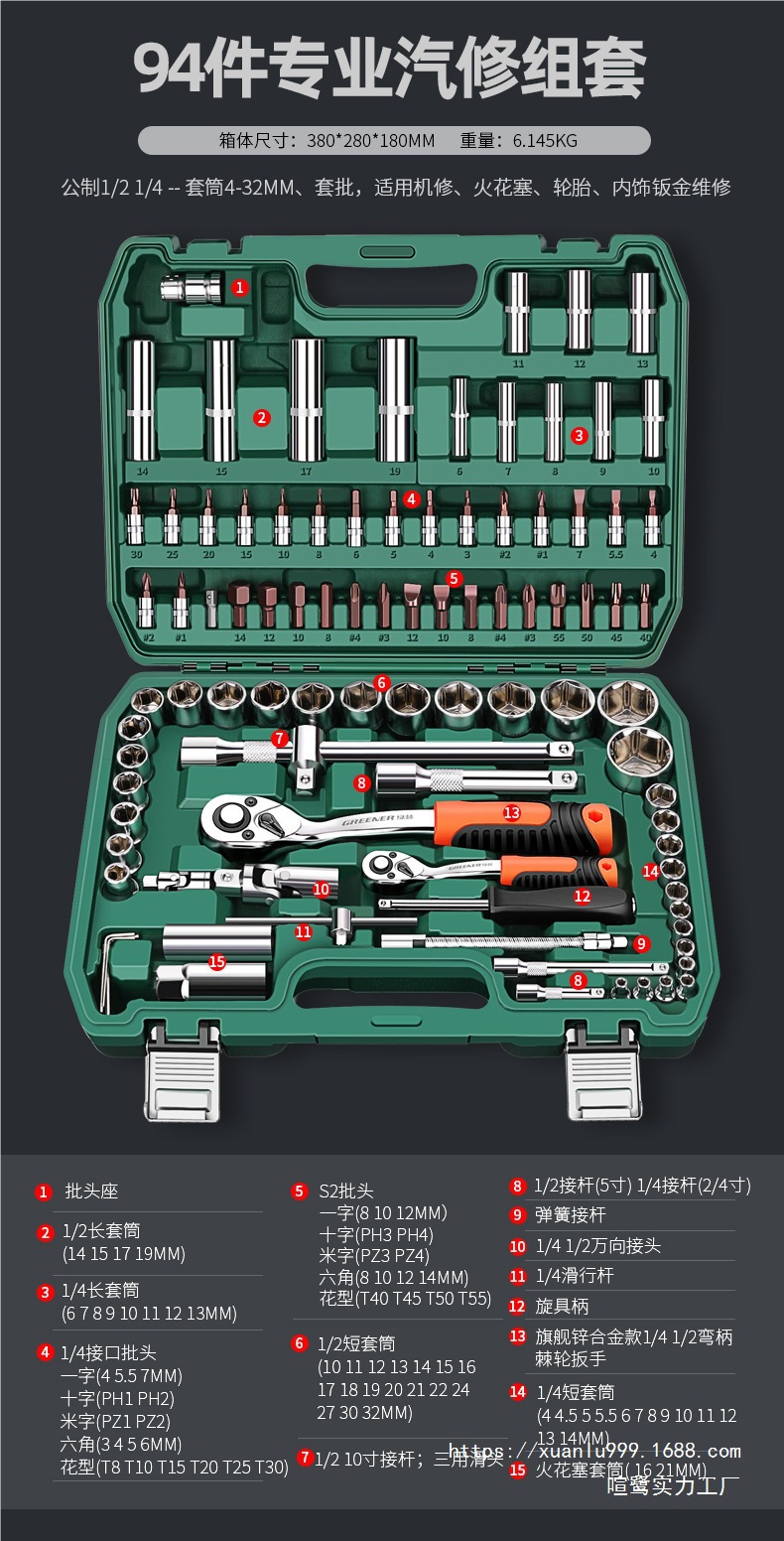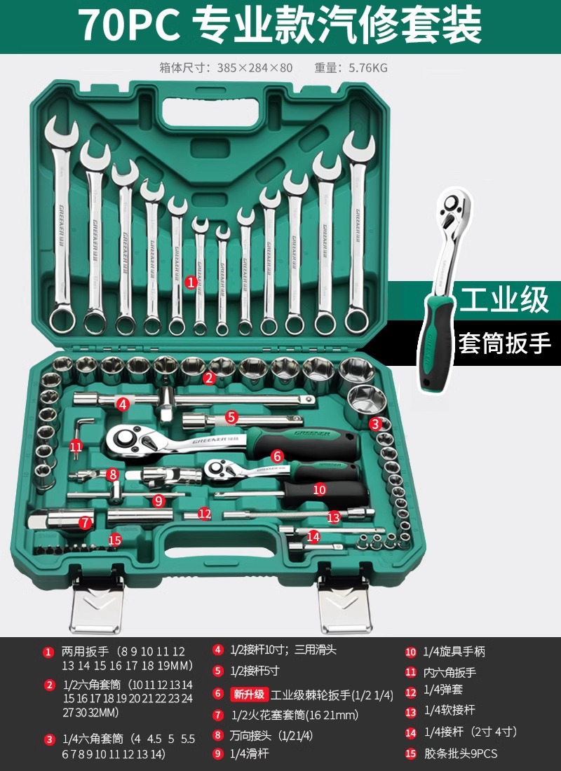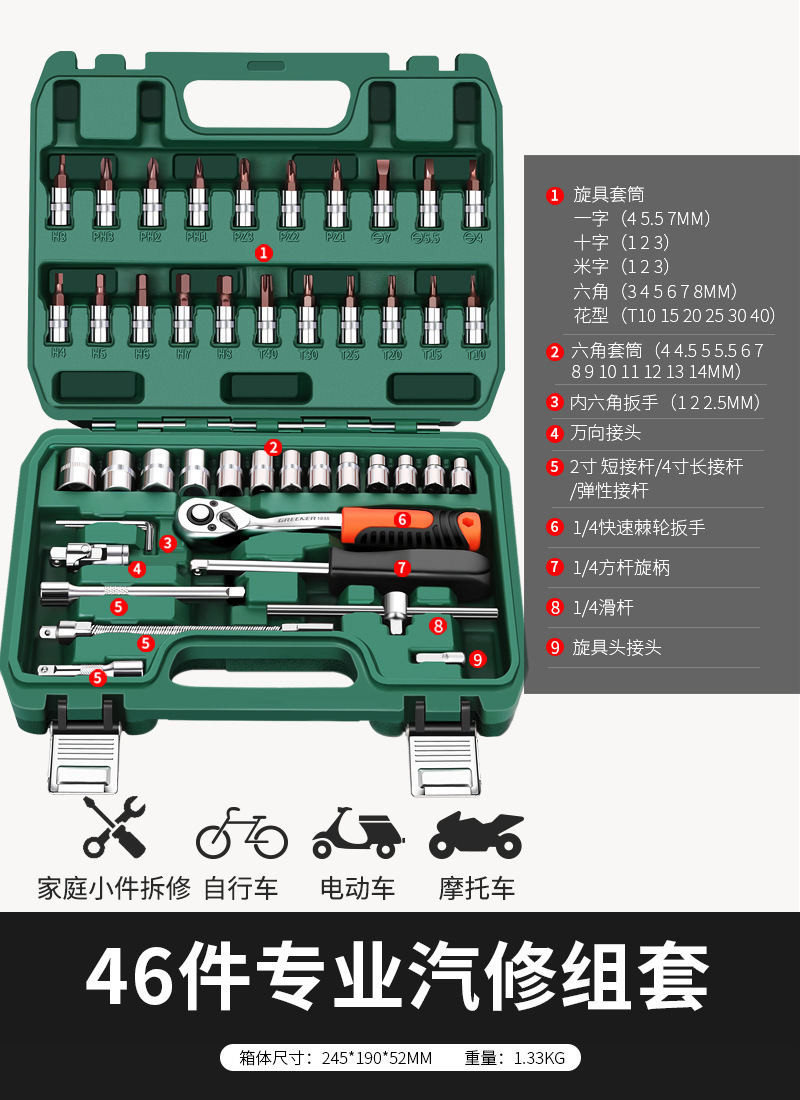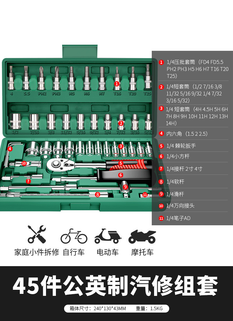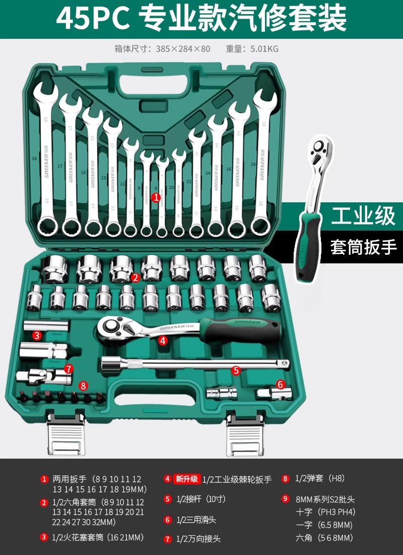 • 강화된 직선 핸들 미터법 및 영국식 자동 수리 45개 세트