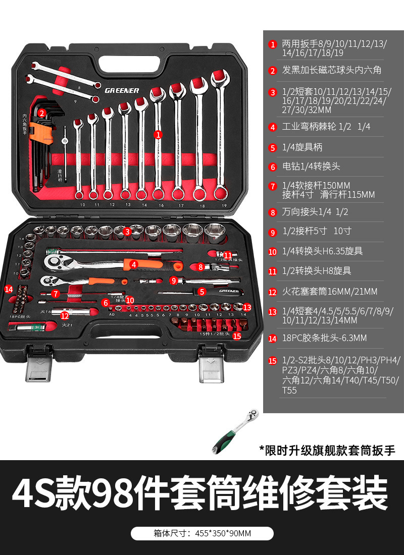 • [프로페셔널 모델] 72톱니 곡선 핸들 자동 수리 45개 세트