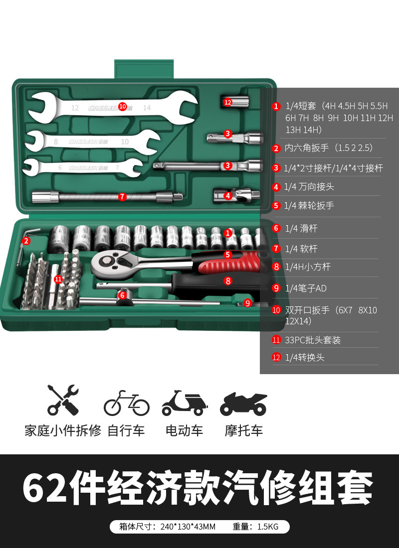 • 강화된 직선 핸들 자동 수리 62개 세트..