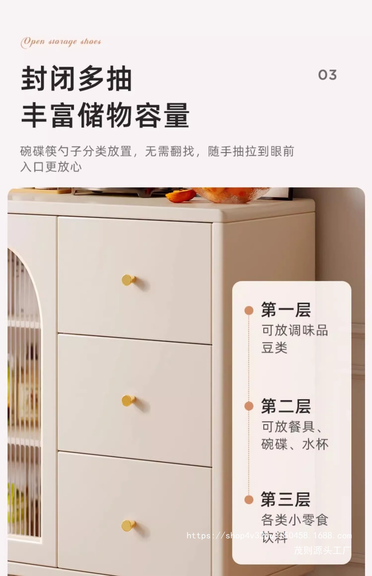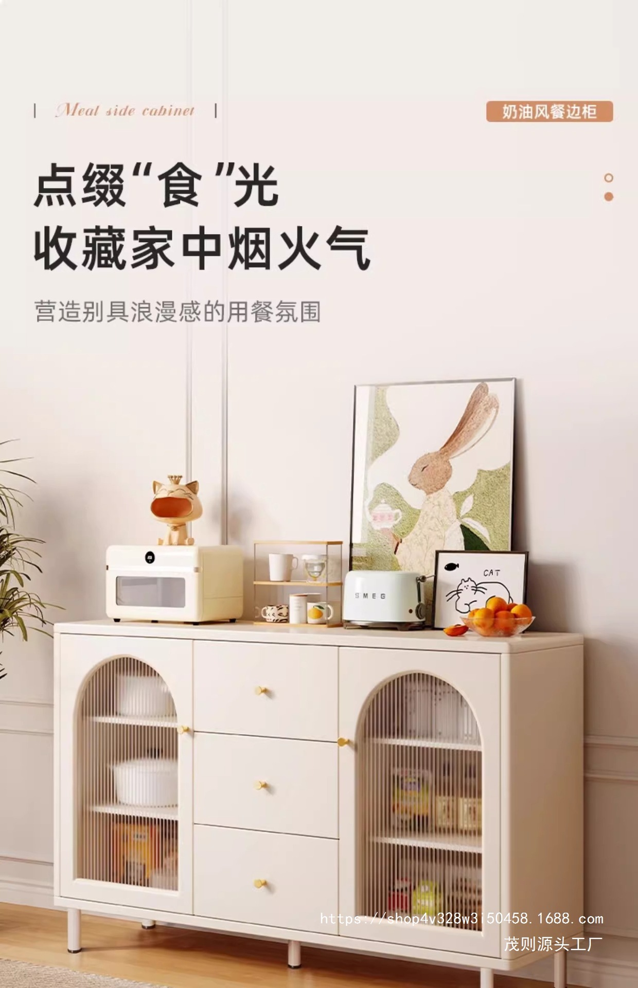 크림 스타일 찬장 수납 캐비닛 벽걸이형 일체형 차 수납 캐비닛 주방 캐비닛 가정용 찬장 거실 수납 캐비닛스토어 가기