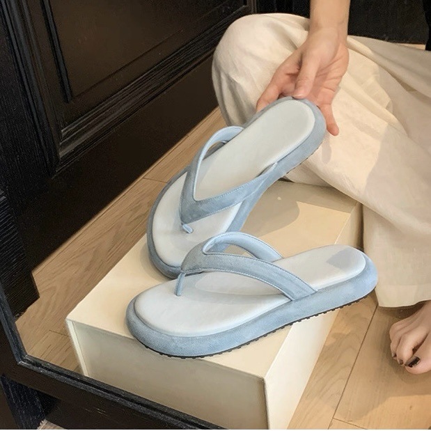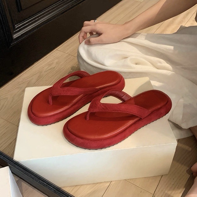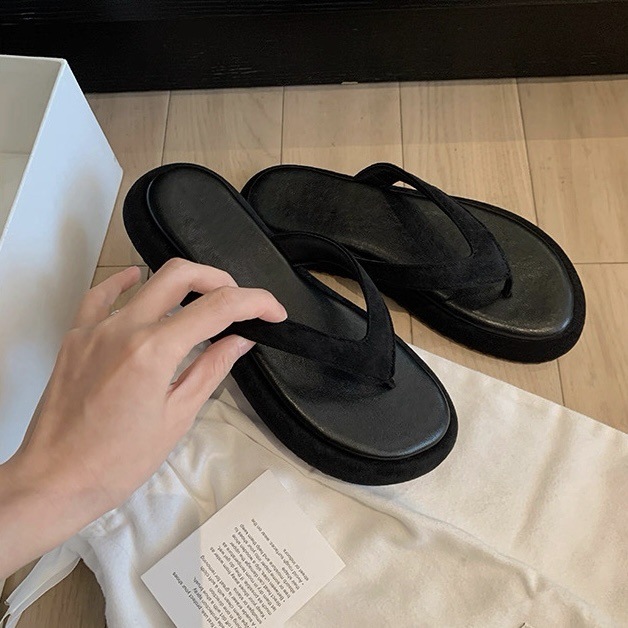Guojia 여름 신상 소가죽 버전 ~ 부드럽고 밀랍 같은 느낌의 둥근 발가락과 작은 두꺼운 밑창의 여성용 비치 슬리퍼스토어 가기