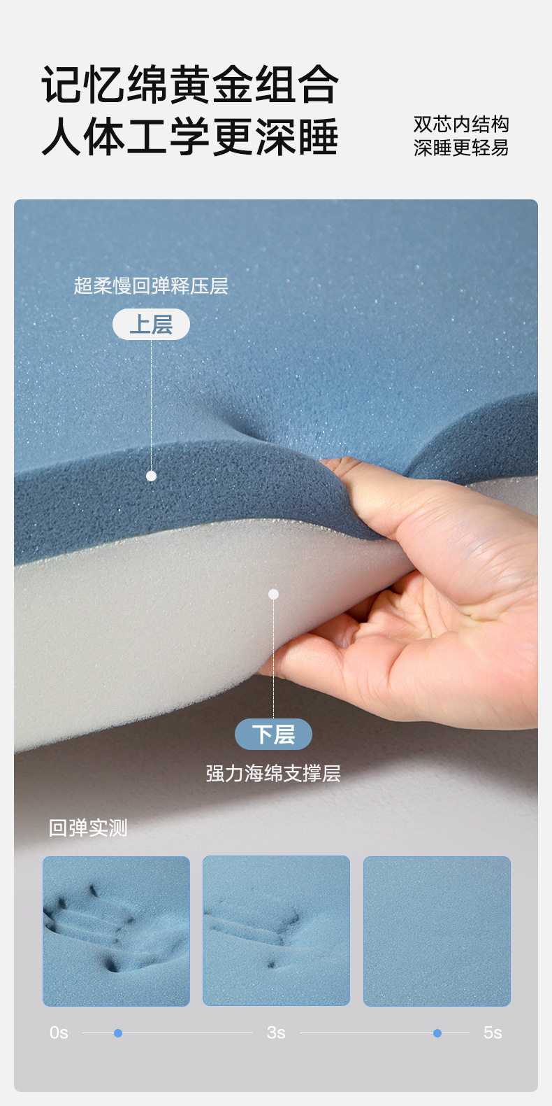 • 150x190cm-더블침대 [느린 반발력 메모리폼, 오래 자도 무너지지 않음]