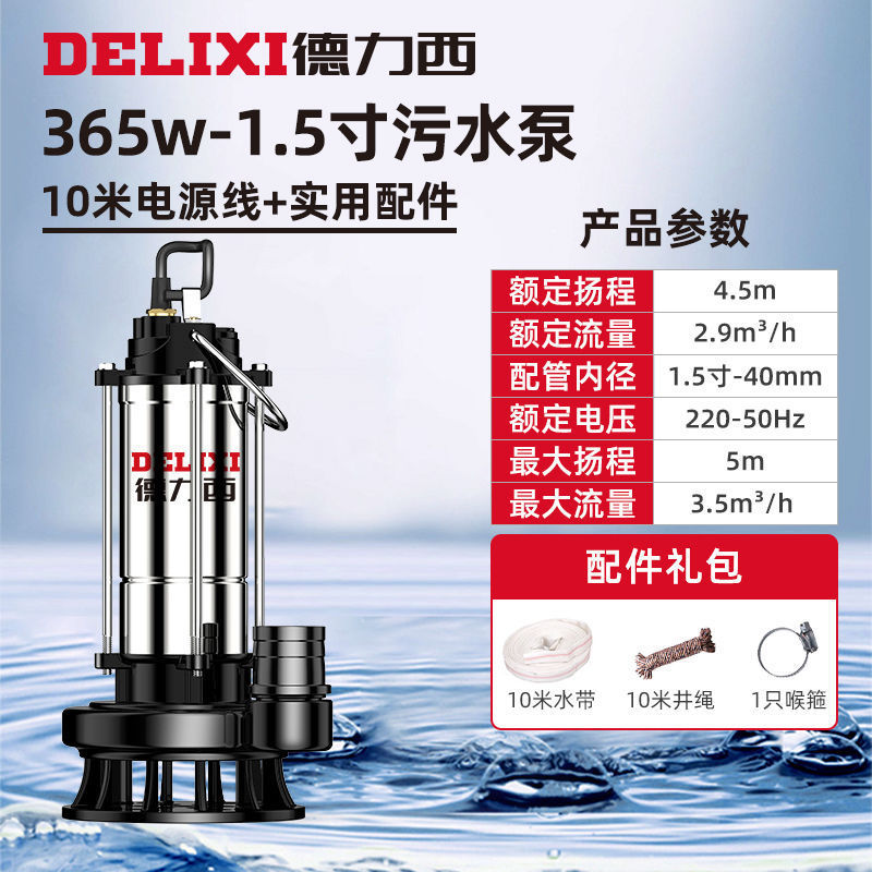Delixi 차세대 DC 흡입 펌프 가정용 고출력 하수 펌프 농업용 하수 자동 대형 흡입