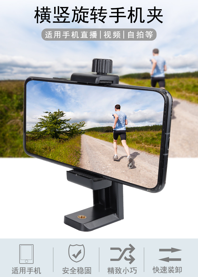 수평 및 수직 휴대폰 클립 삼각대 비디오 라이브 방송 셀카봉 확대 범용 360 ° 회전식 휴대폰 홀더