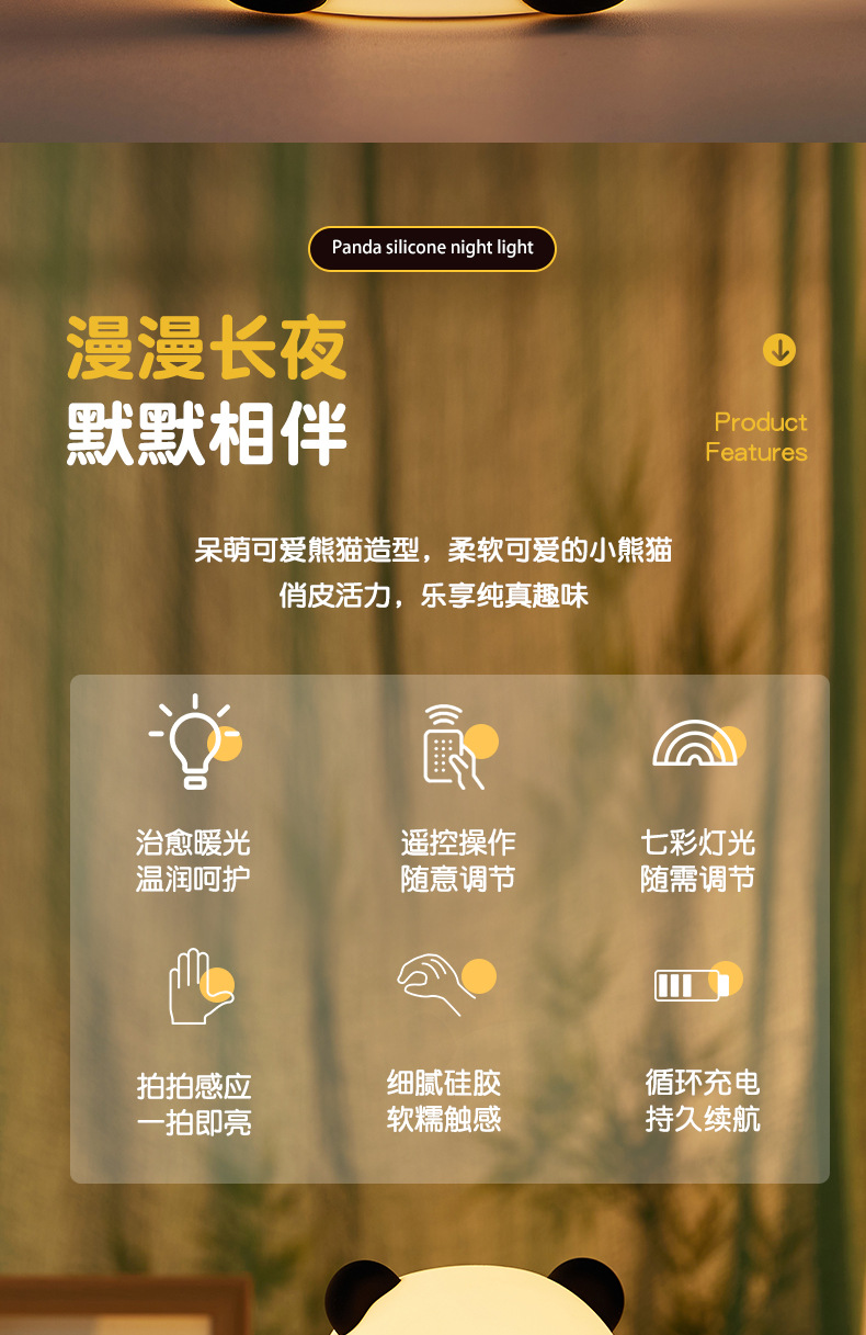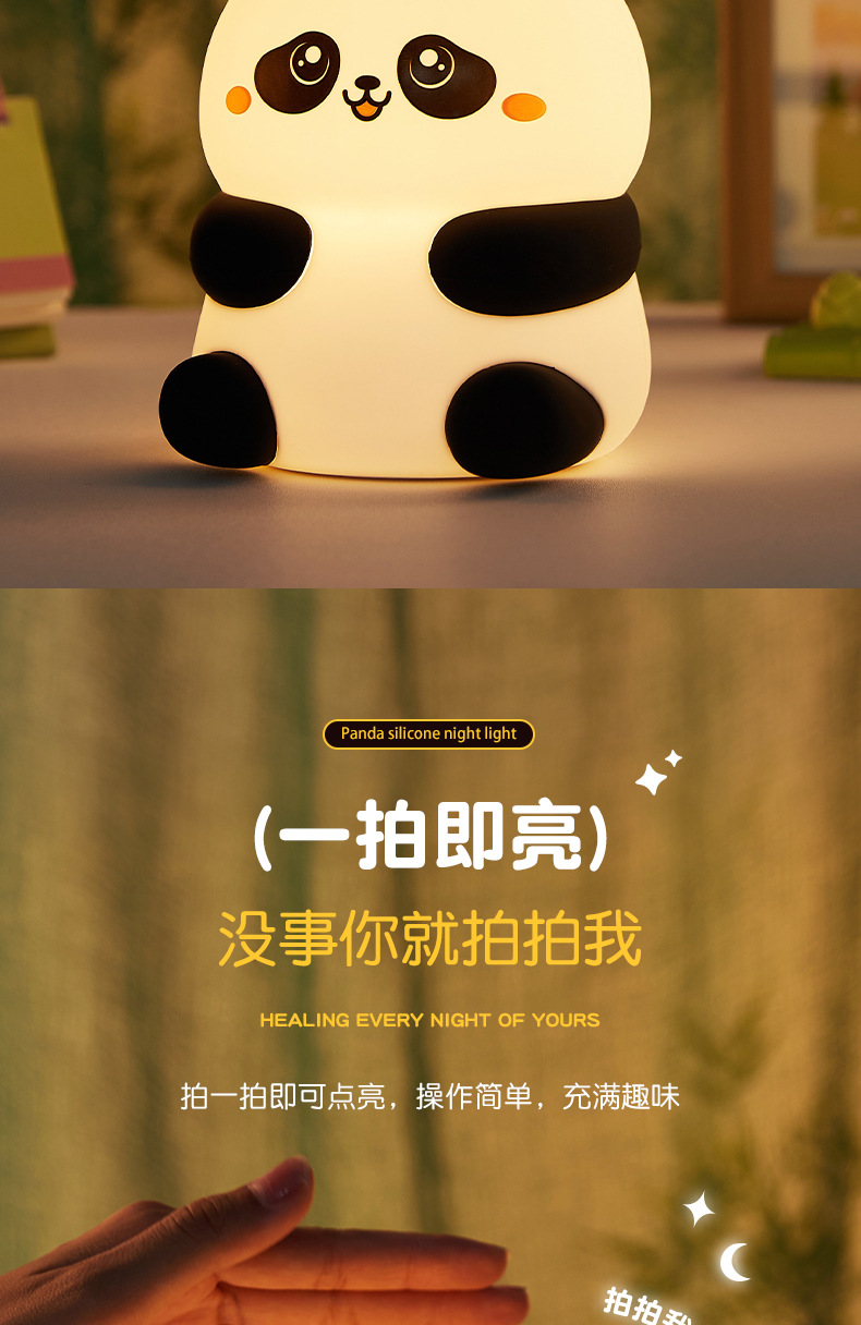 此时亮暖白色灯光,表示电源已开 轻拍一下硅胶,可切换到红色 再次轻拍可切换到绿色 第三次轻拍可切换到蓝色 第四次轻拍可切换到七彩渐变色 长期不用时请按底部的开关关闭电源