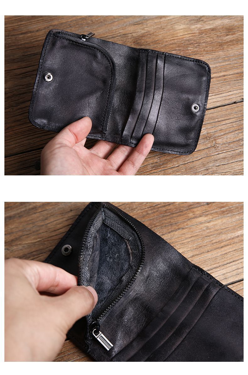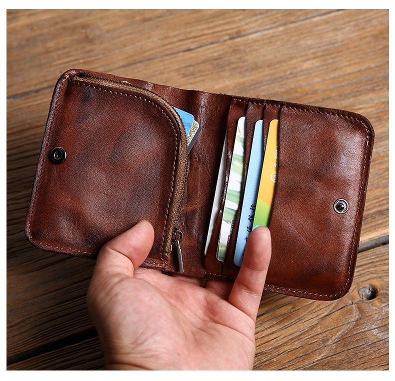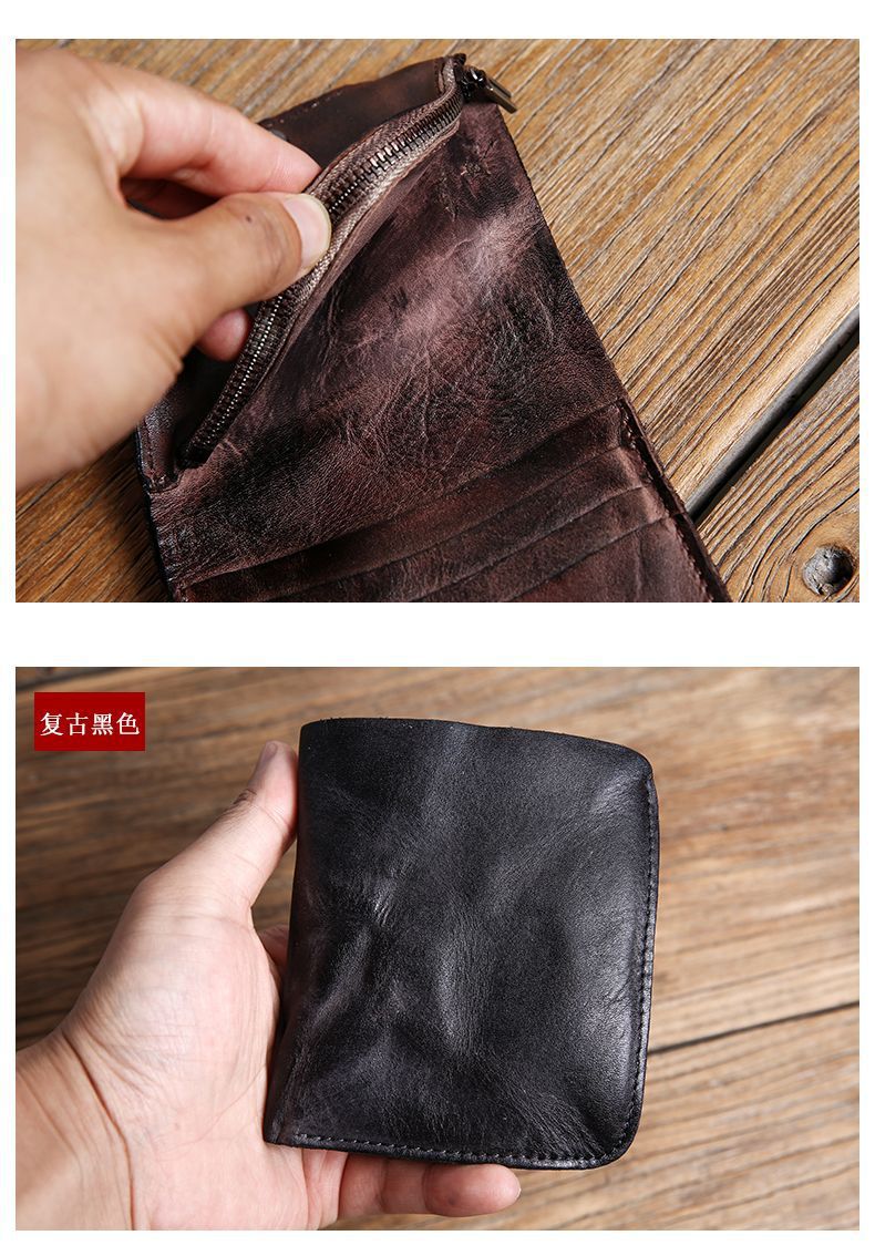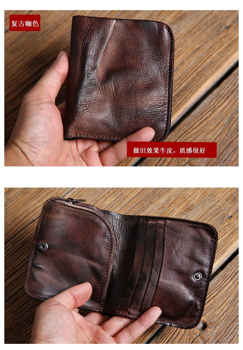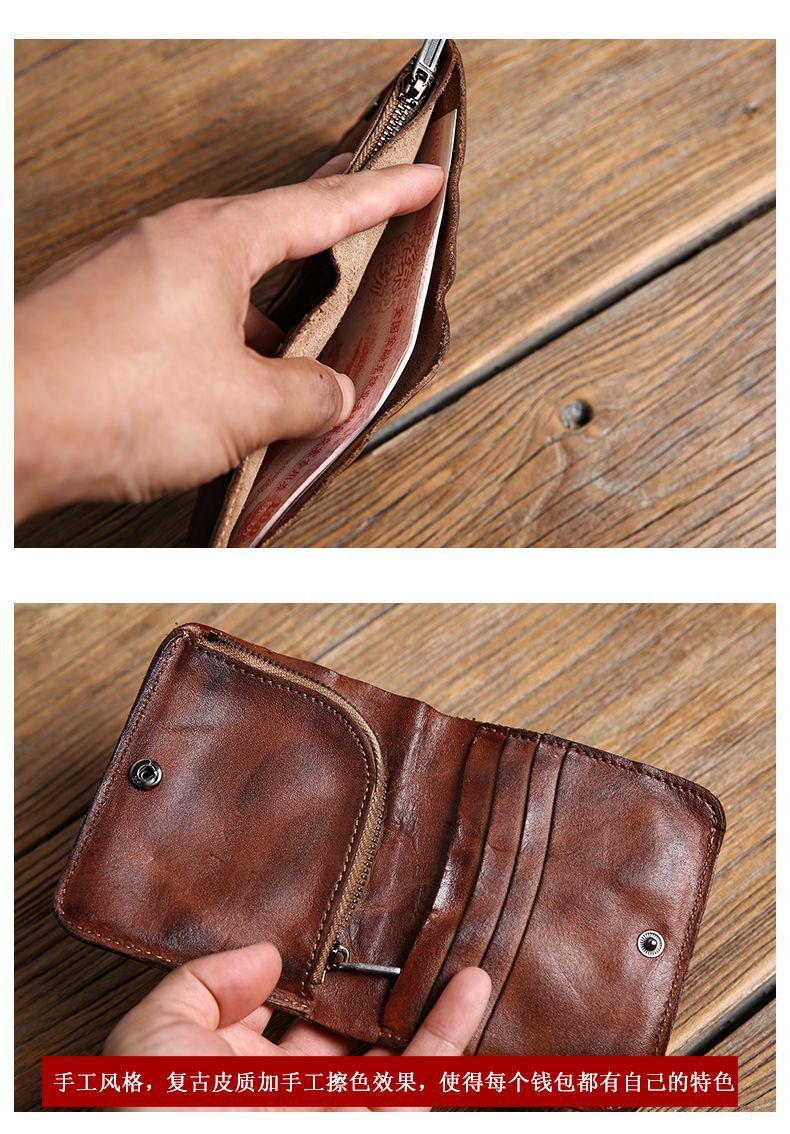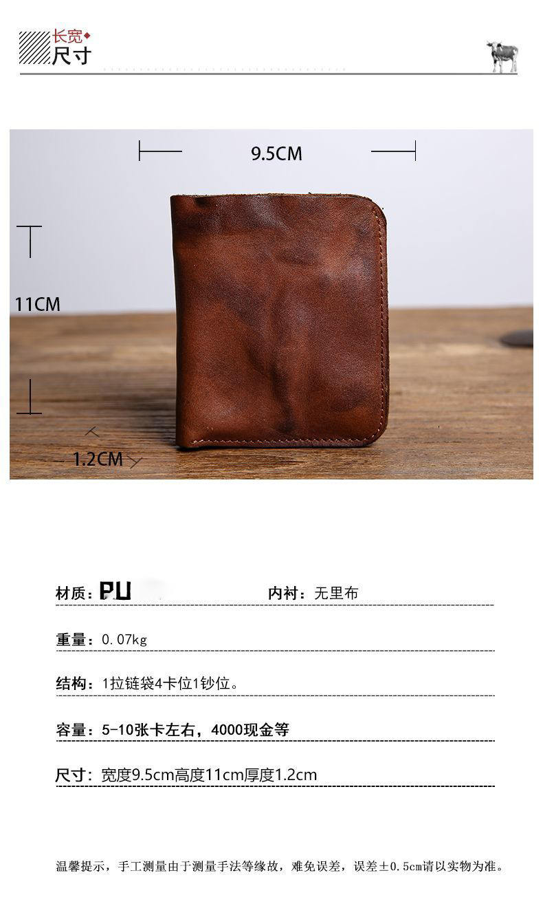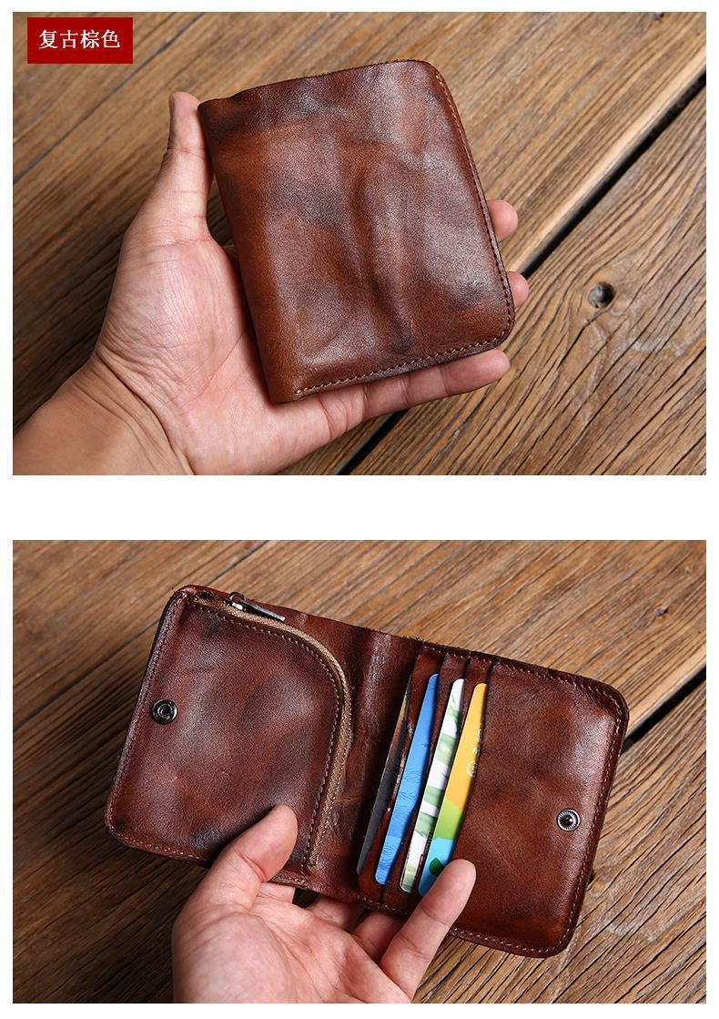 수제 지갑 남성용 짧은 세로 지갑 복고풍 유행 브랜드 크로스 보더 맞춤형 비즈니스 단순 틈새 미니멀리스트 지갑 남성용스토어 가기