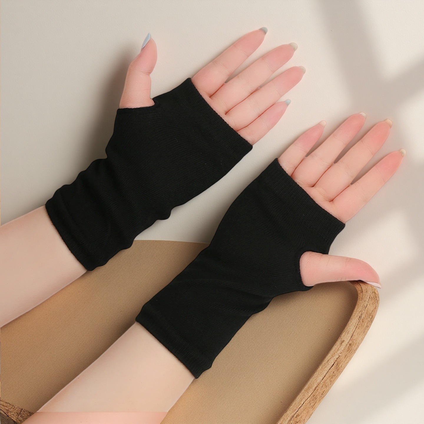 봄과 여름 면 장갑 반 손가락 스포츠 핑거리스 장갑 니트 짧은 남성과 여성 가을과 겨울 얇은 DIY 팔 커버스토어 가기