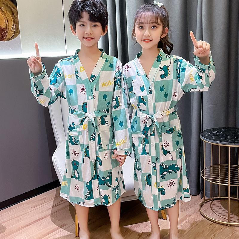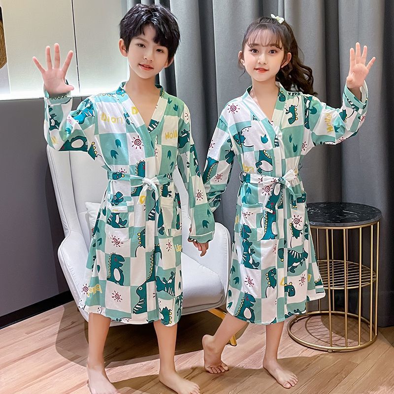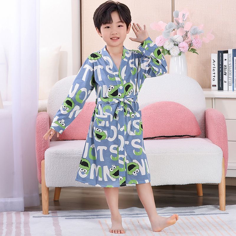 소년 잠옷 봄, 가을, 여름 얇은 순면 어린이 목욕 가운 만화 큰 어린이 목욕 가운 수영 해변스토어 가기
