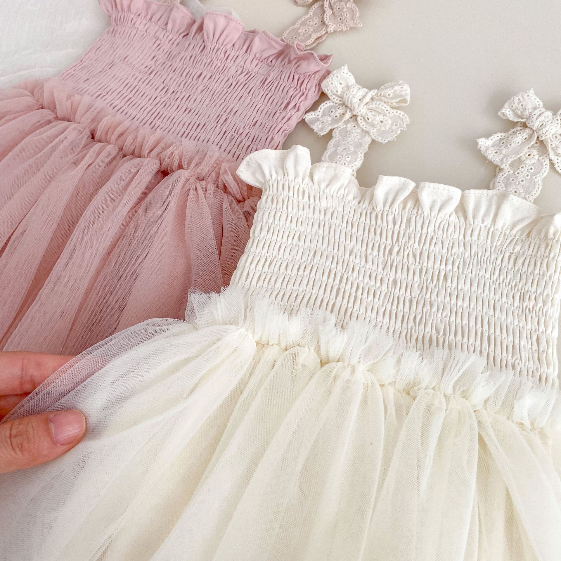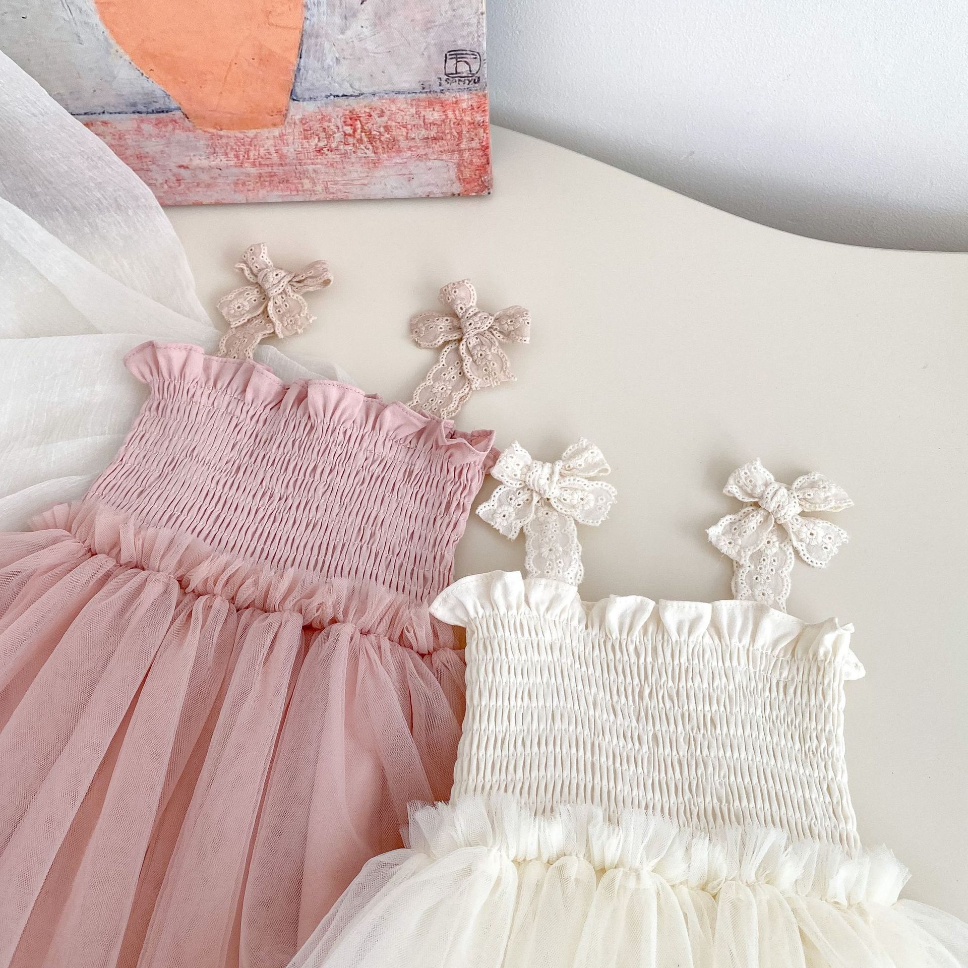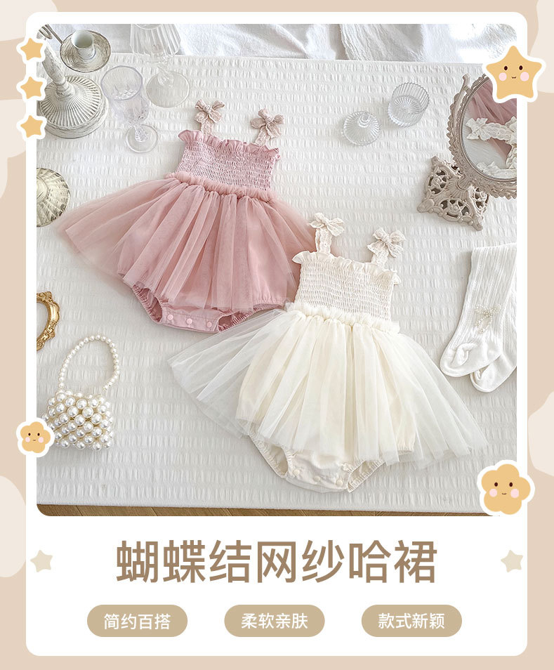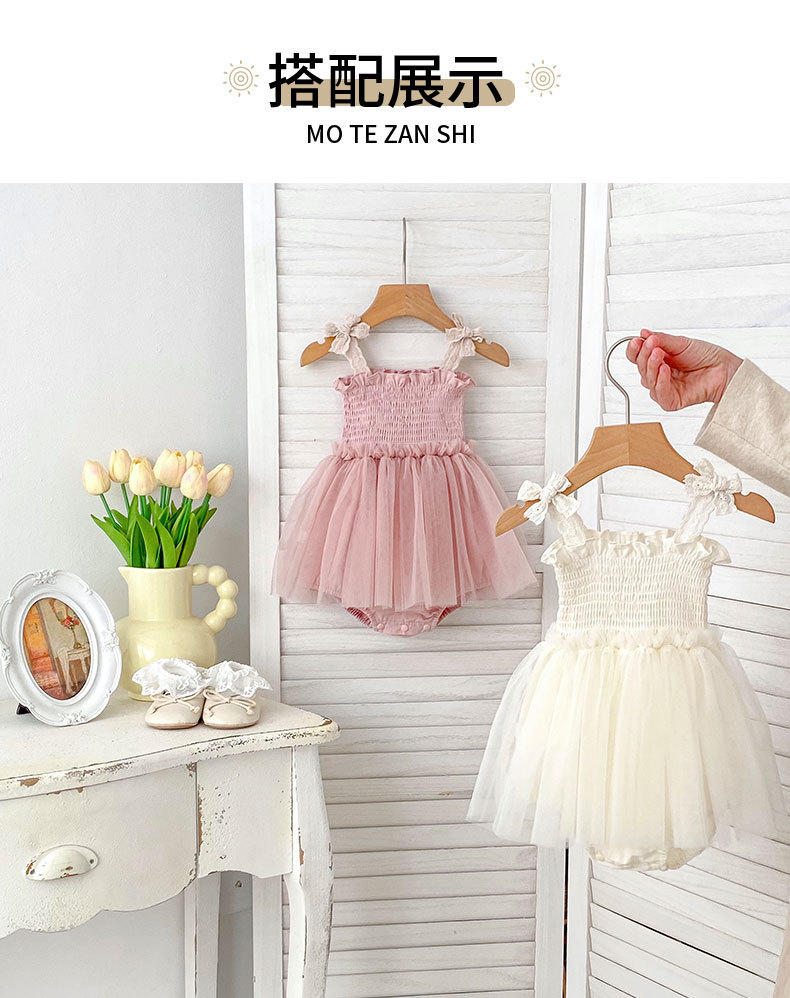 Ins 한국어 버전 베이비 거즈 스커트 베이비 가운 소녀 점프 슈트 서스펜더 메쉬 드레스 레이스 공주 스커트스토어 가기