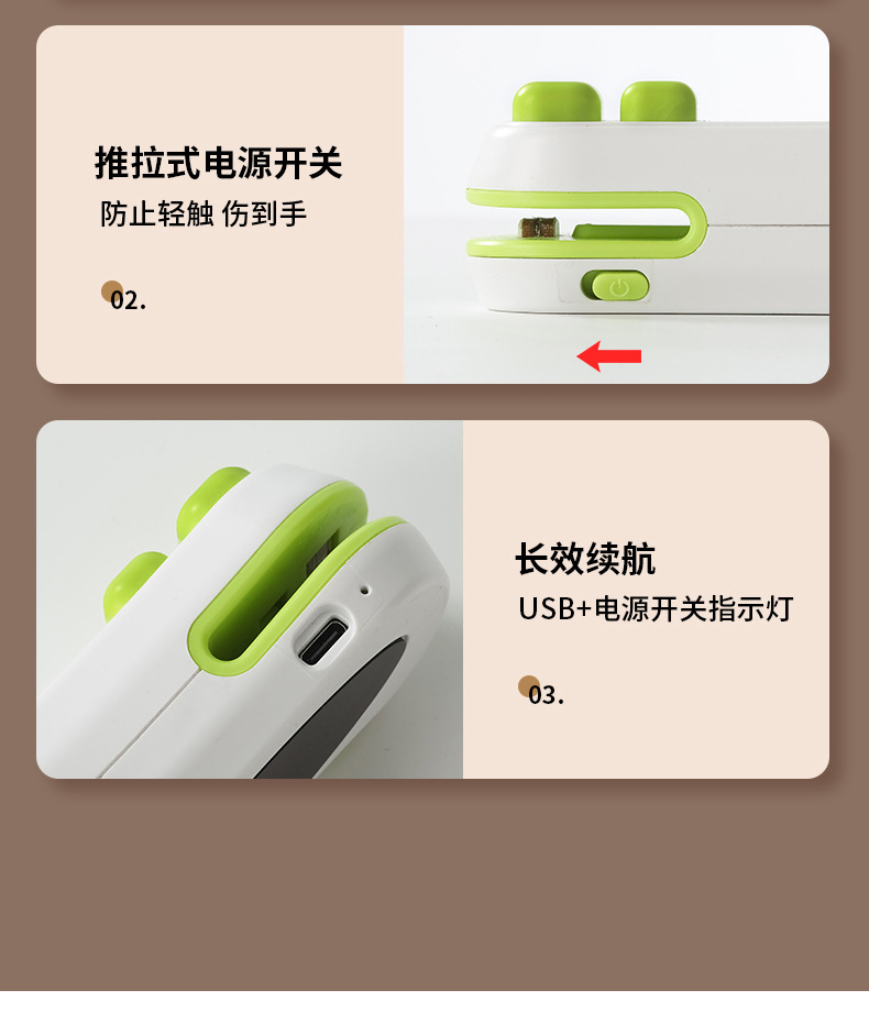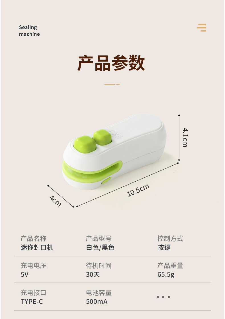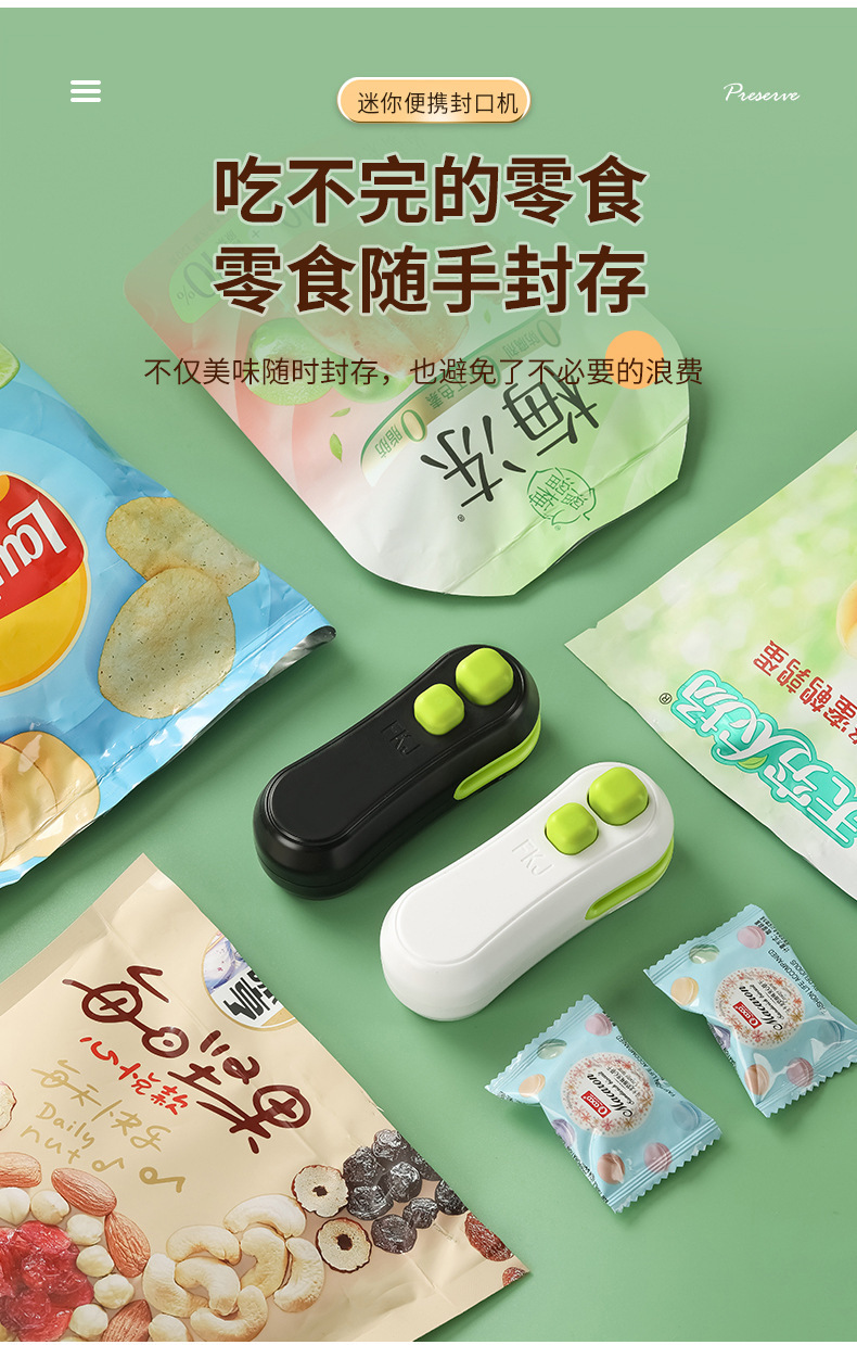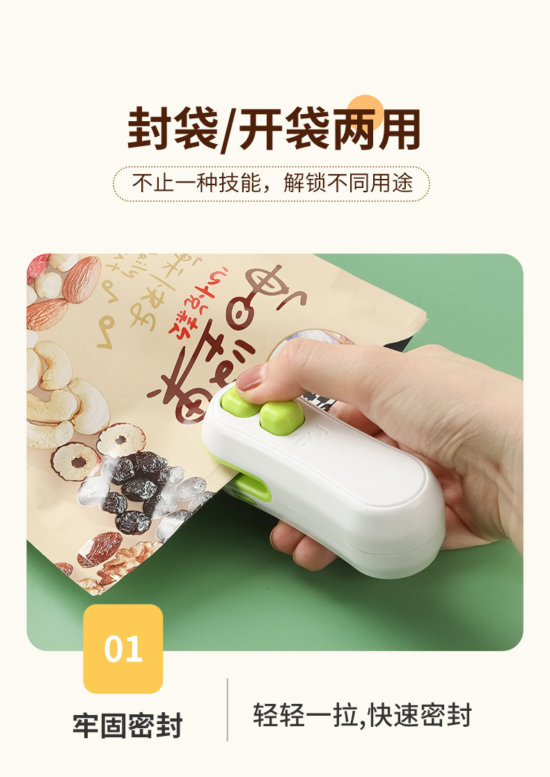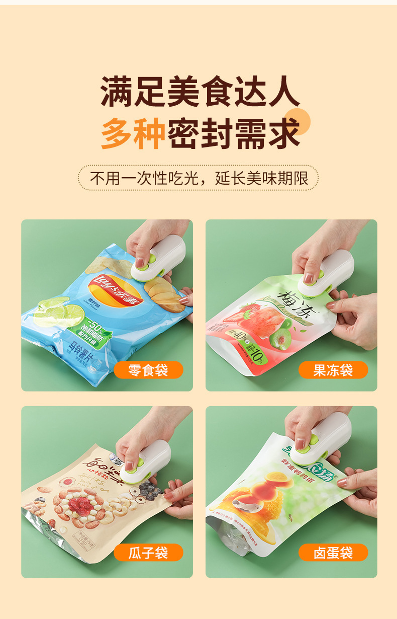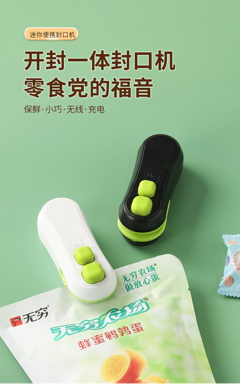 추천 간식 미니 USB 밀봉기 소형 플라스틱 밀봉 휴대용 비닐 봉투 손으로 누르는 식품 보존 밀봉 클립스토어 가기