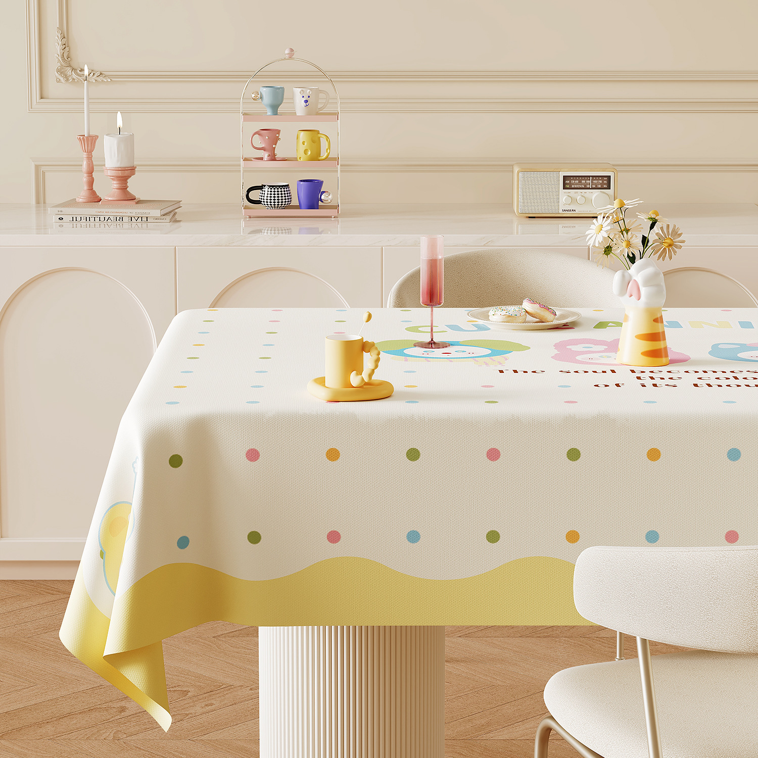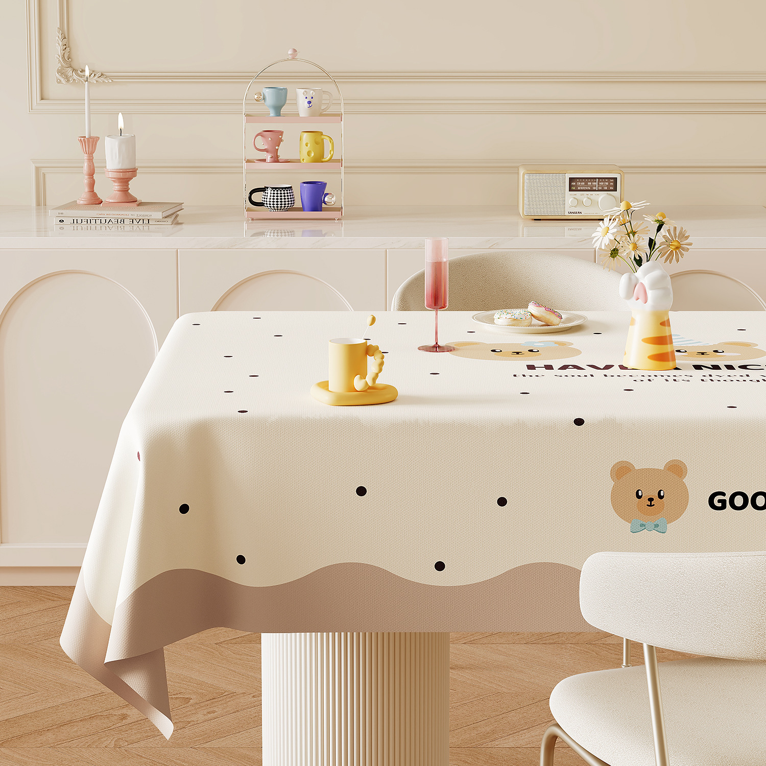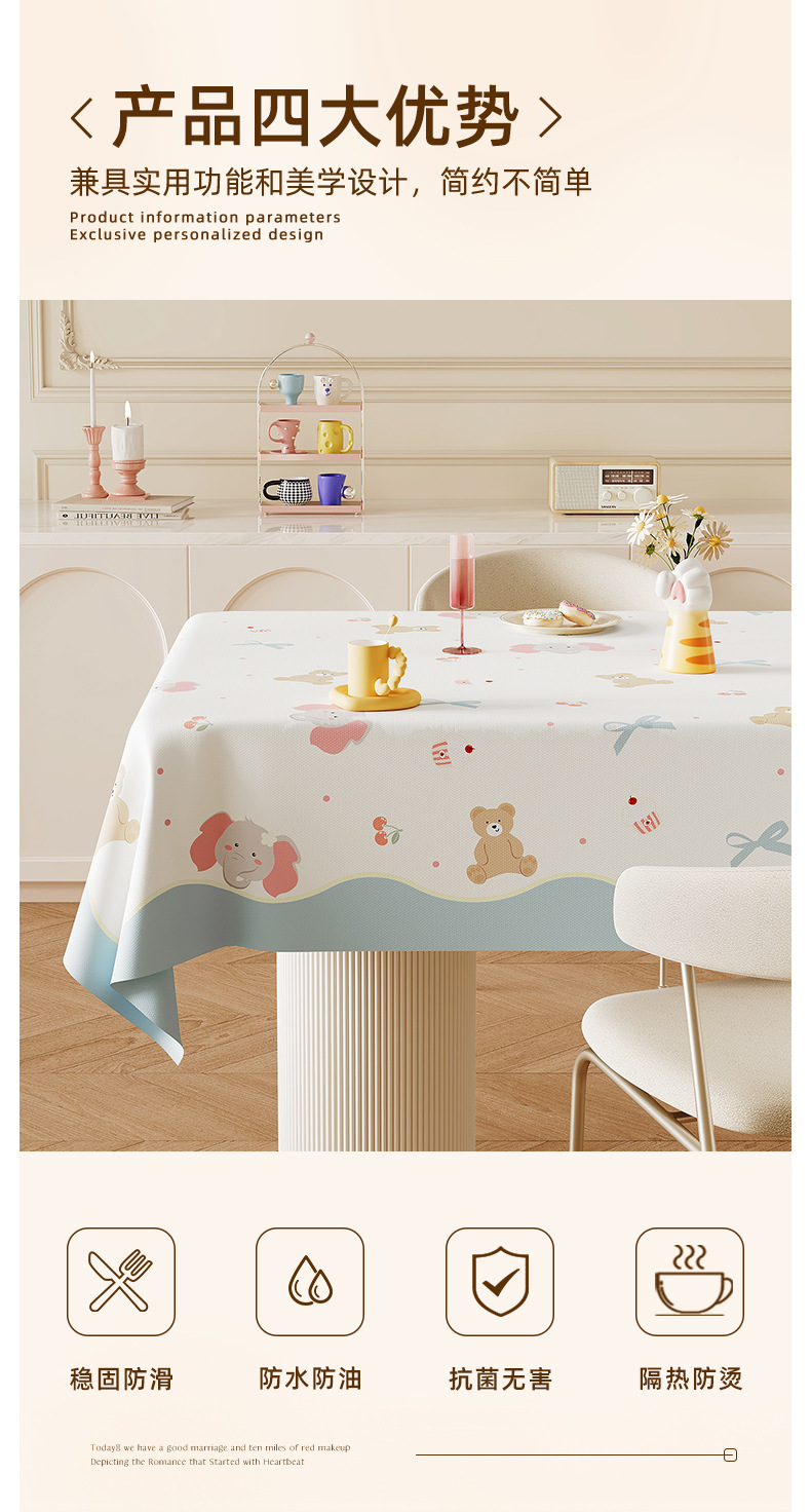 크림 스타일 식탁보 방수 및 내유성 노워시 2025 새로운 분위기 PVC 화상 방지 식탁보 커피 테이블 커버 천