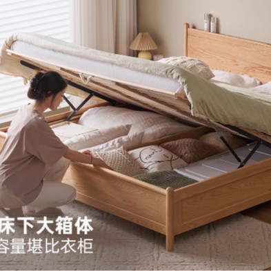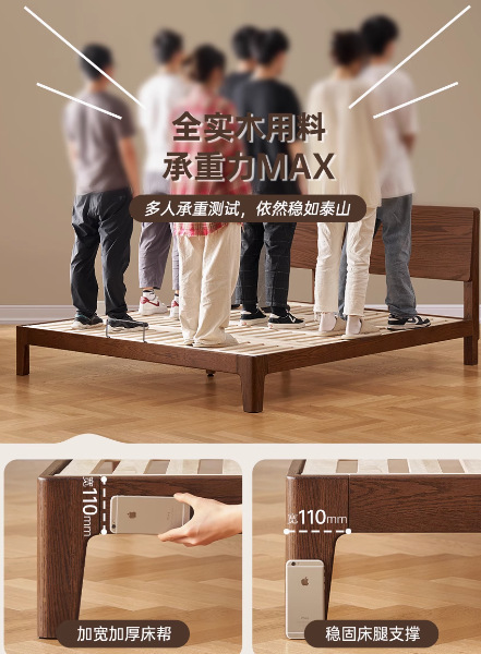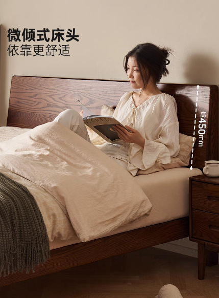 원목 침대 북유럽 모던 심플 오크 호두 색상 1.8m 더블 침대 마스터 침실 대형 침대 P4012스토어 가기