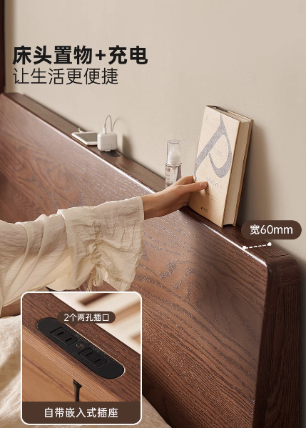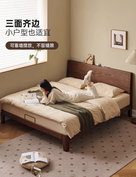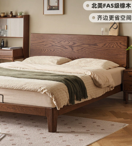 원목 침대 북유럽 모던 심플 오크 호두 색상 1.8m 더블 침대 마스터 침실 대형 침대 P4012