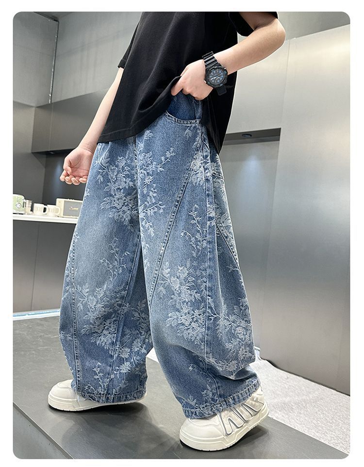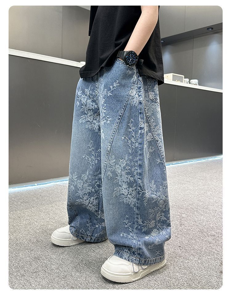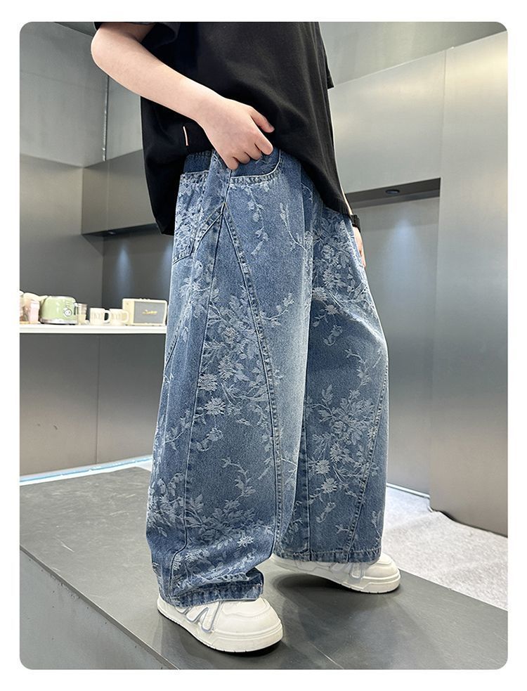 아동복 소년 청바지 2025 새로운 중대형 아동 바지 잘 생긴 캐주얼 루즈 소년 봄, 가을 바지스토어 가기