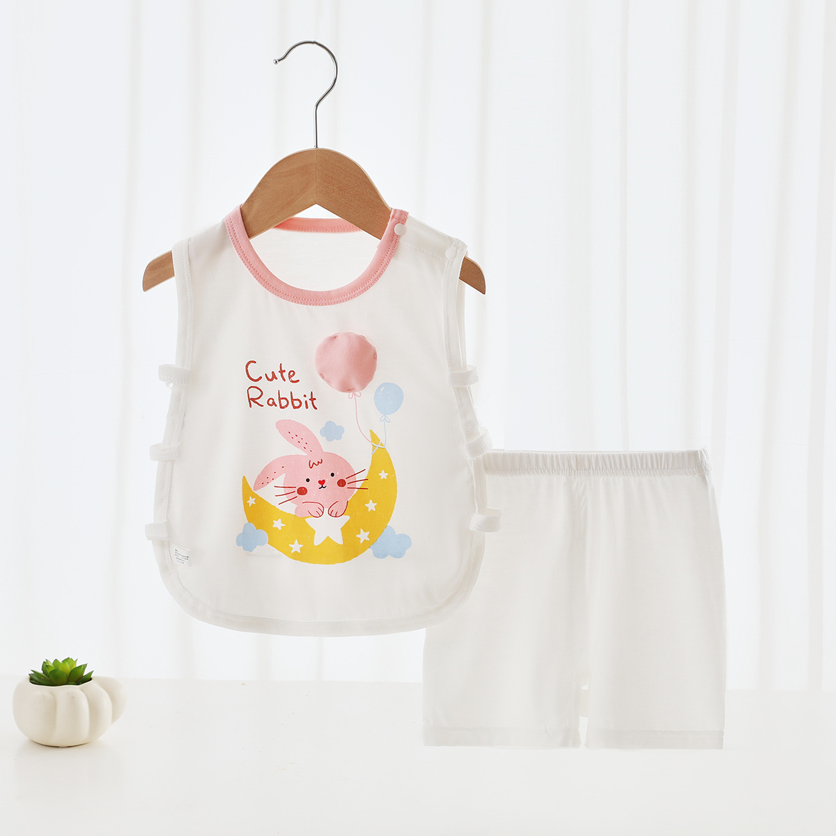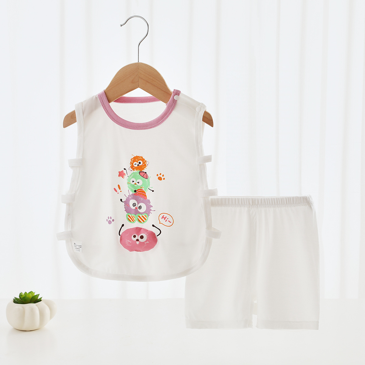 [Pinch Sound] 여름 베이비 조끼 세트 얇은 텐셀 만화 베이비 민소매 반바지 세트 비파 코트스토어 가기