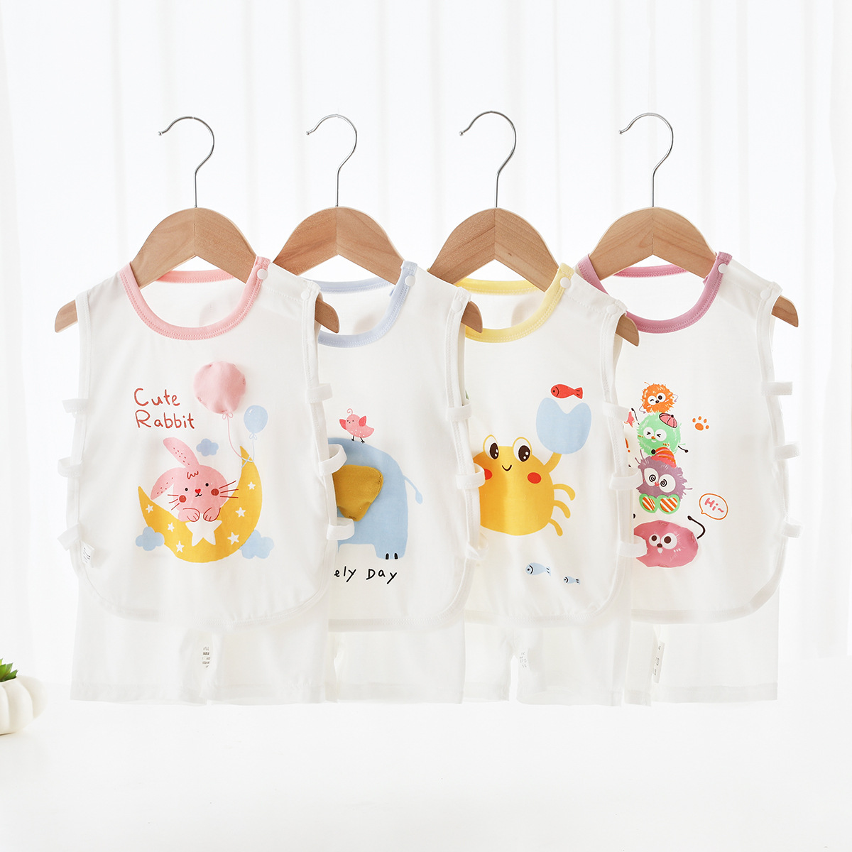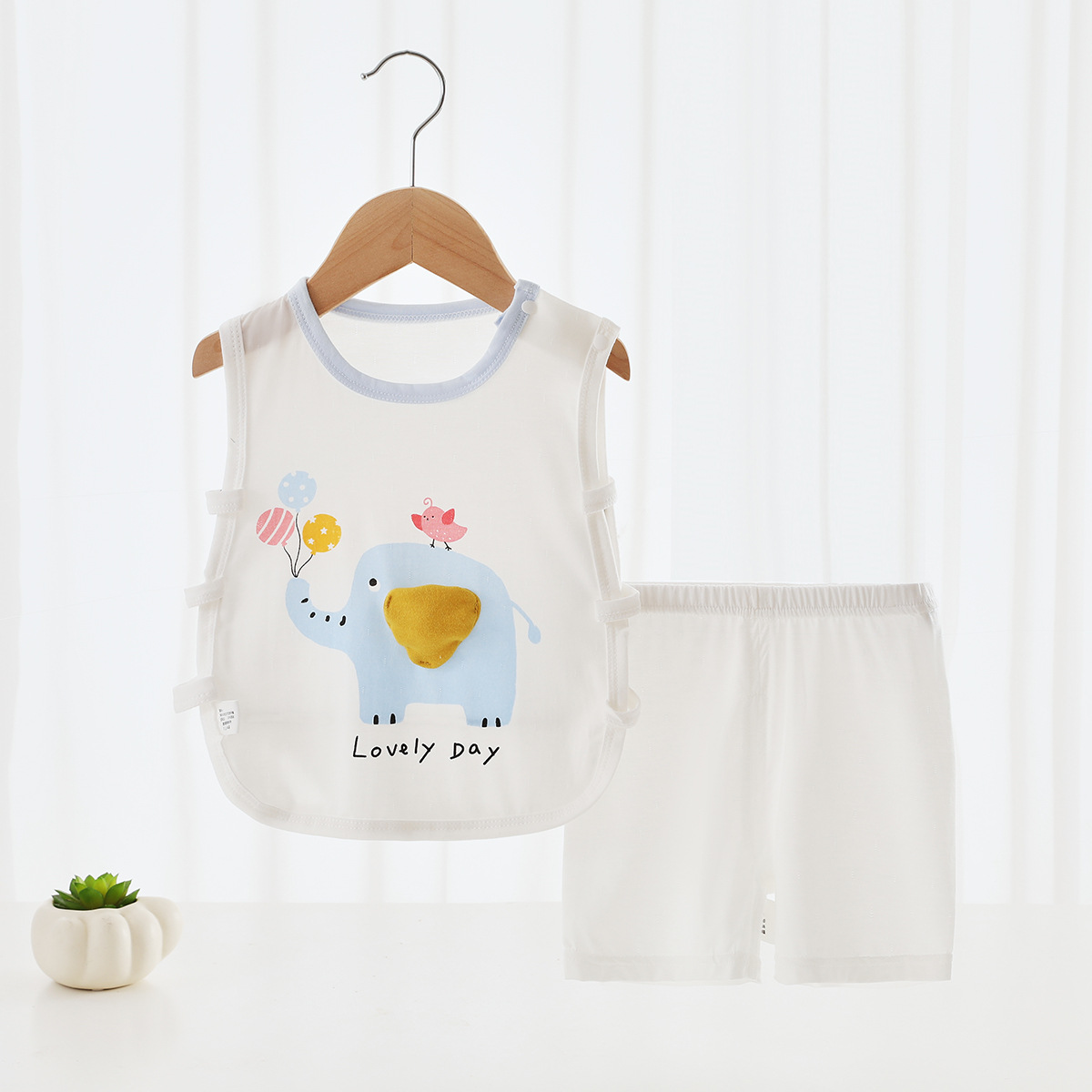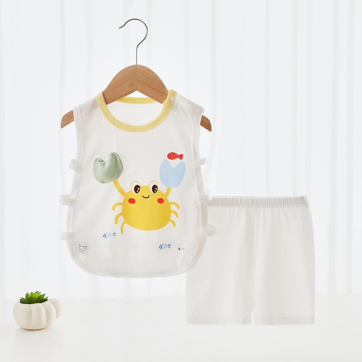[Pinch Sound] 여름 베이비 조끼 세트 얇은 텐셀 만화 베이비 민소매 반바지 세트 비파 코트
