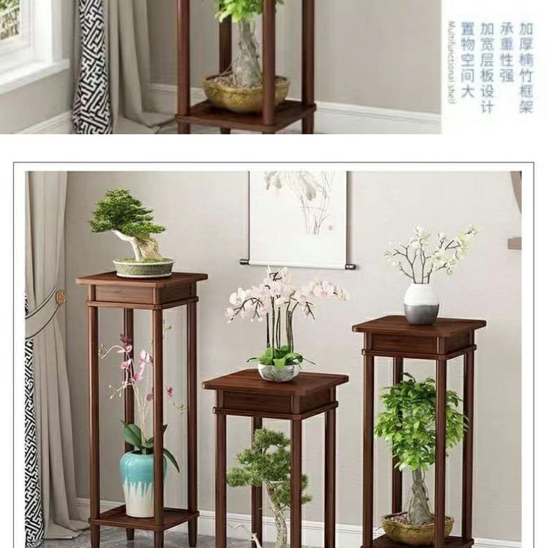 새로운 중국 스타일의 꽃 선반, 거실 화분 선반, 높은 꽃 선반, 대나무 통나무 선반, 실내 발코니 꽃 테이블, 바닥 스탠딩스토어 가기