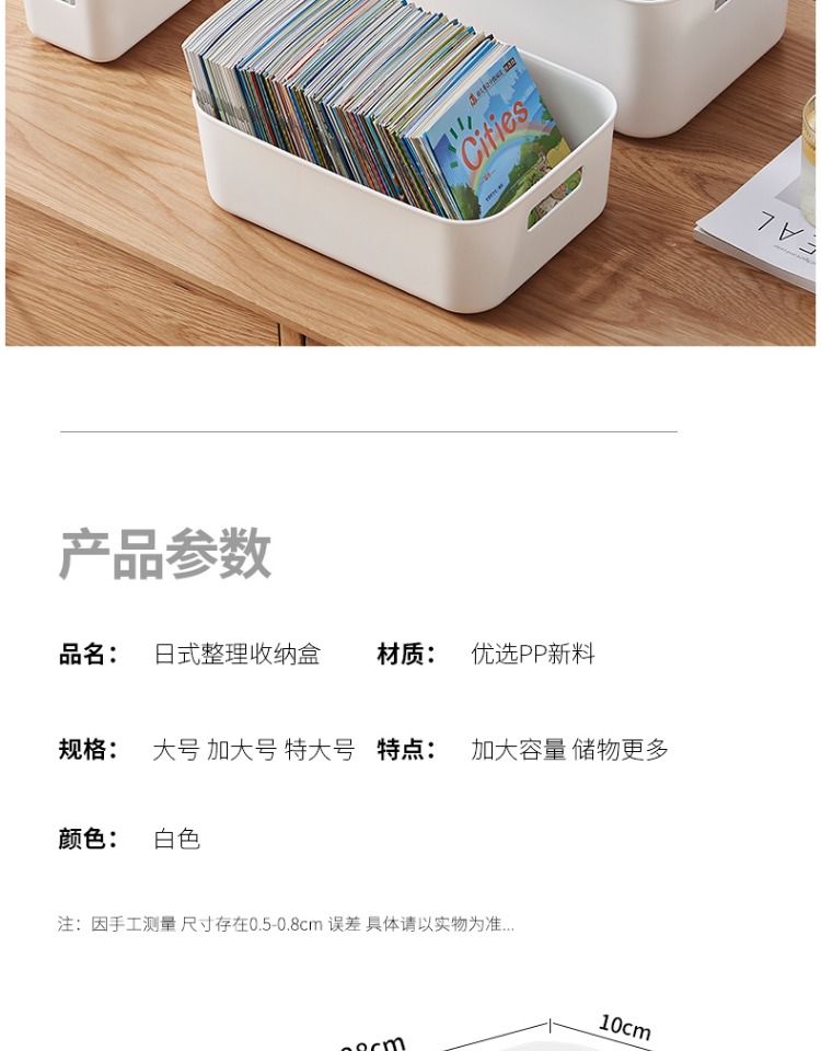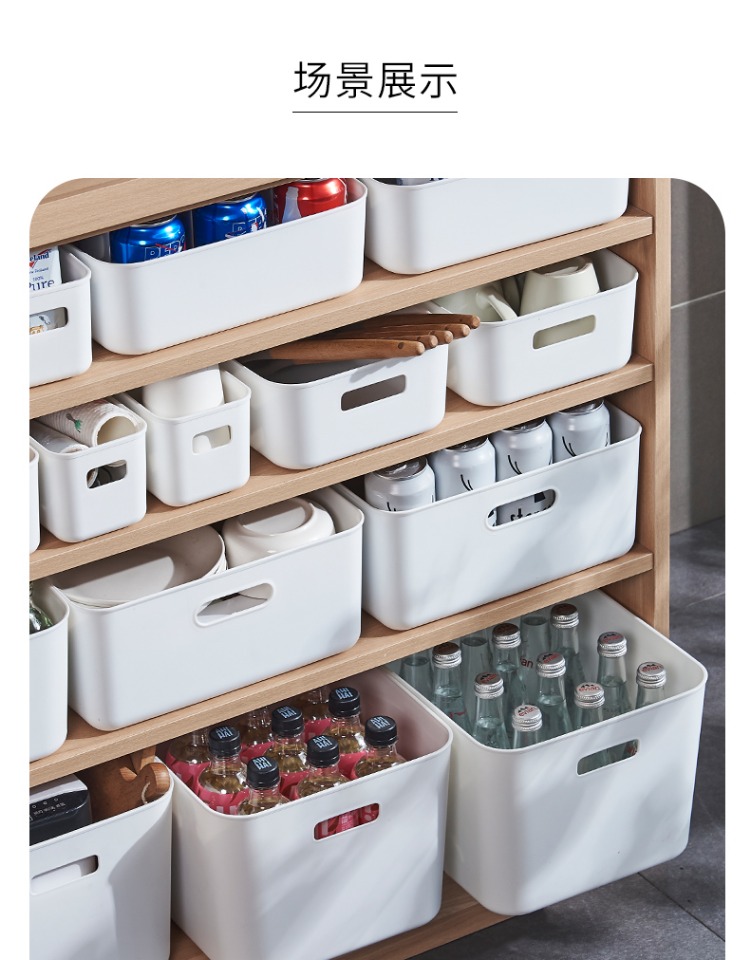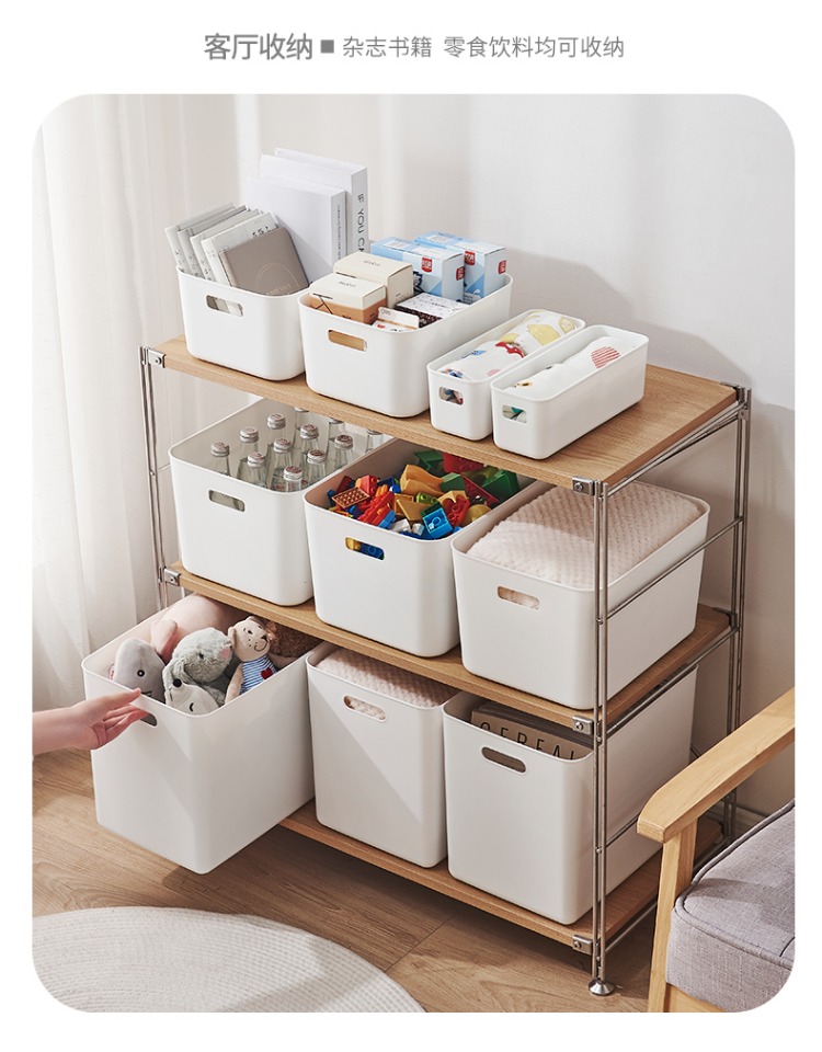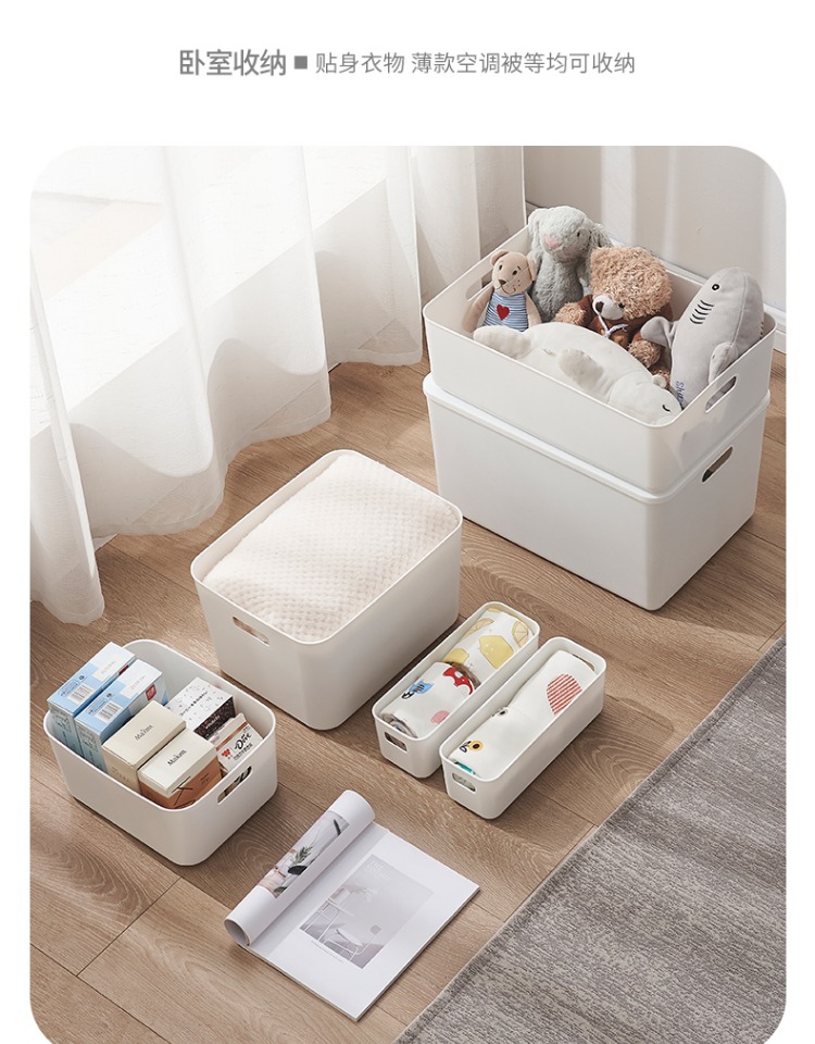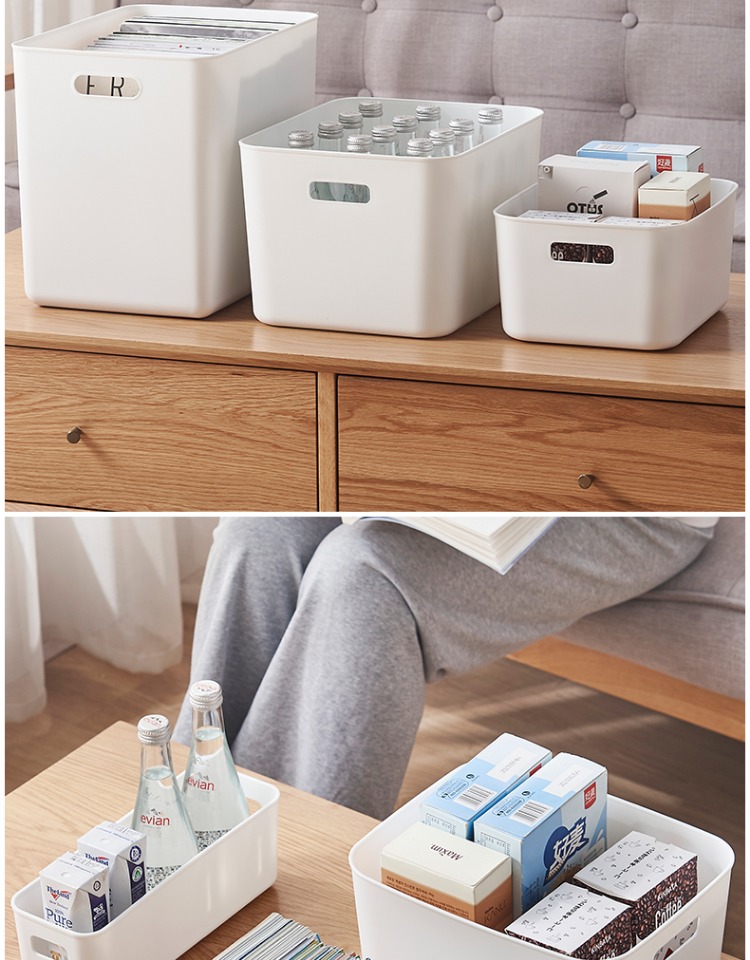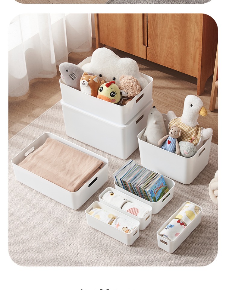 두꺼운 보관 상자 잡다한 보관 바구니 주방 캐비닛 플라스틱 보관 상자 직사각형 흰색 보관 바구니 책상 프레임