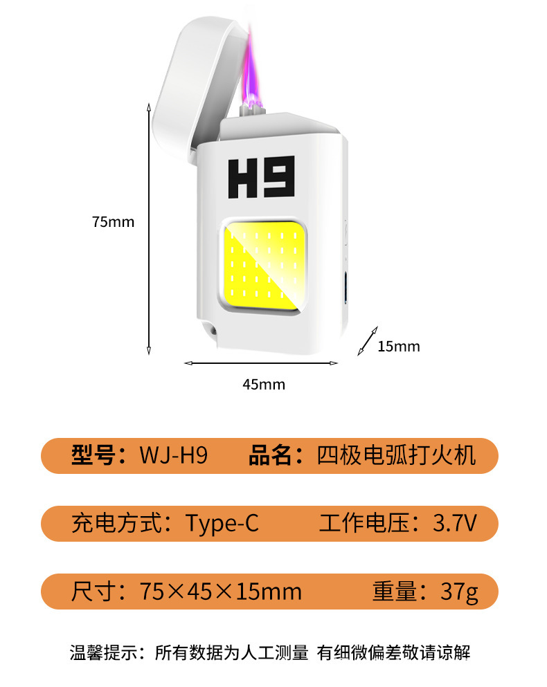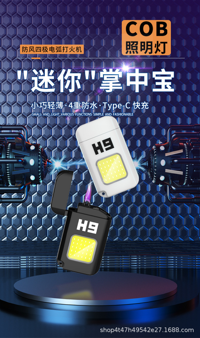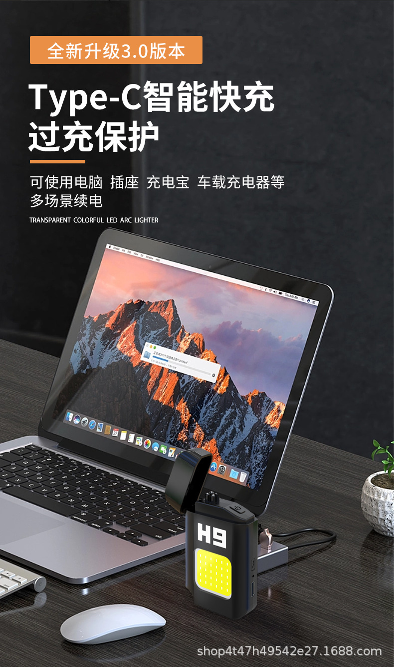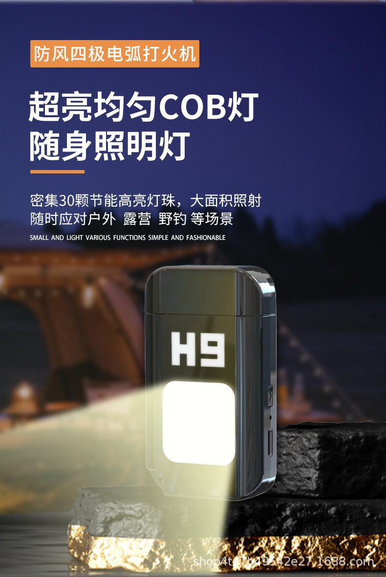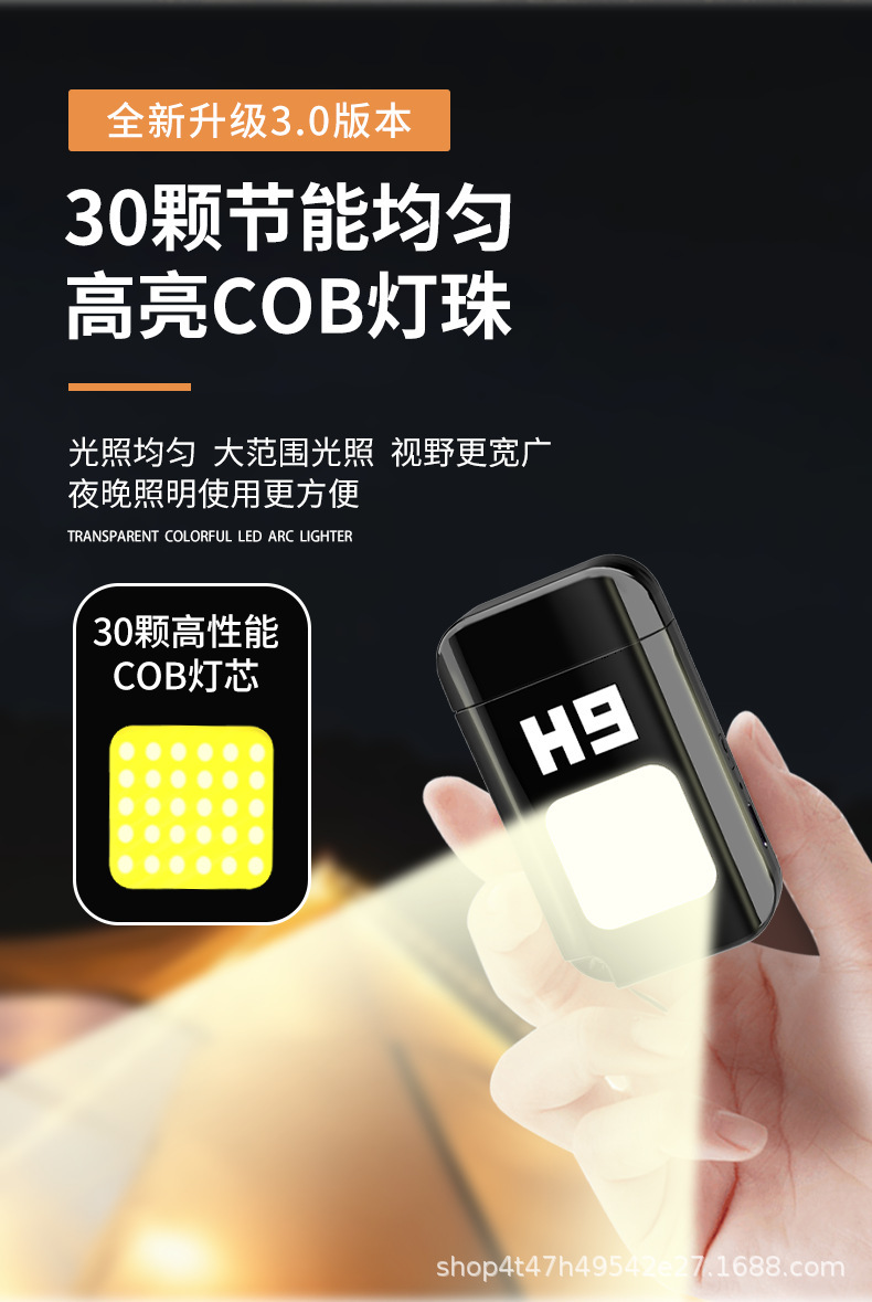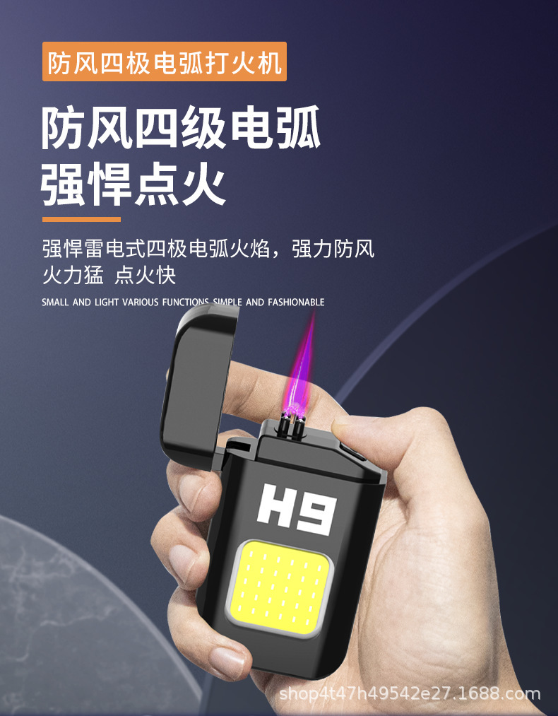 국경 간 다기능 손전등 담배 라이터 휴대용 작업 조명 충전식 키 체인 라이트 아크 라이터