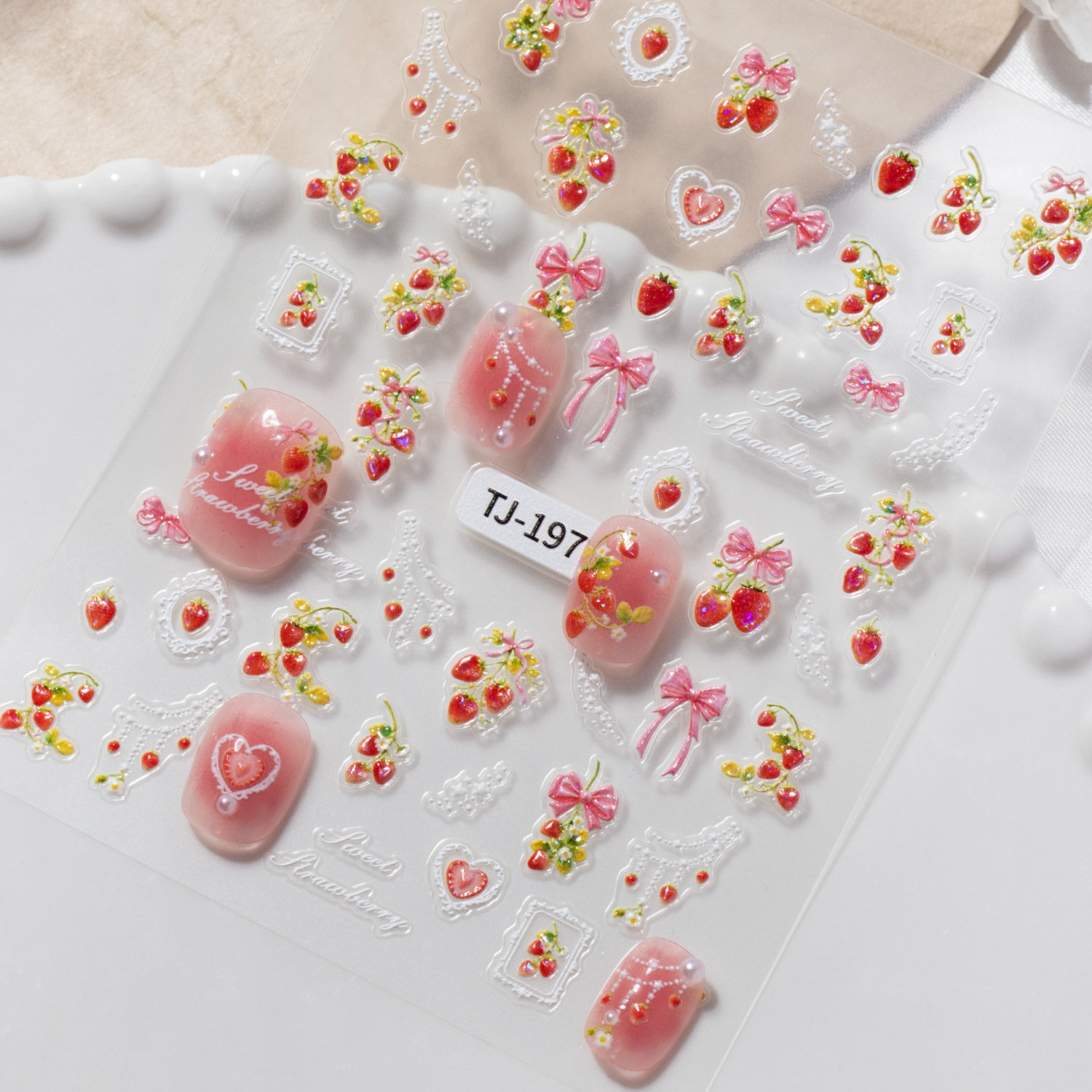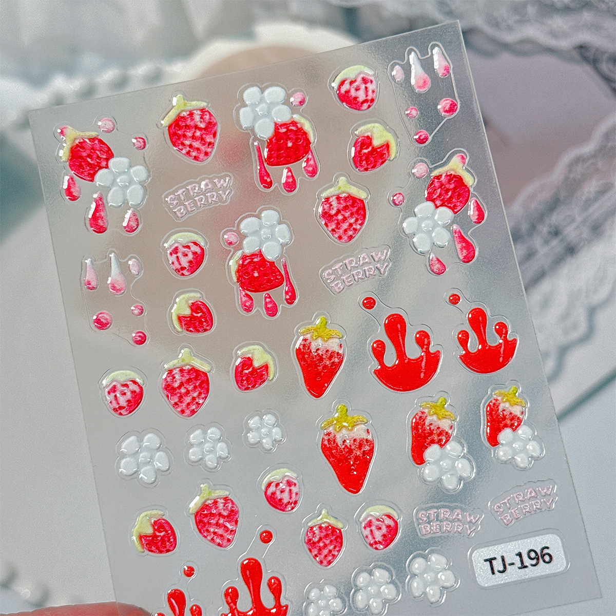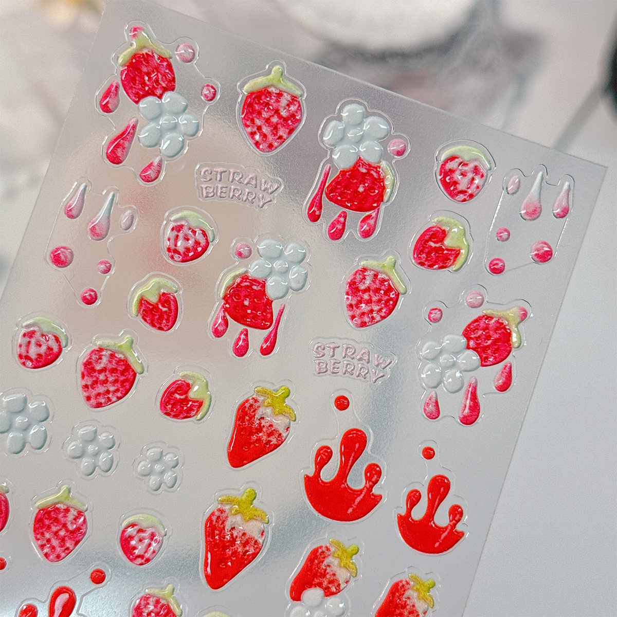 달콤한 주스 딸기 네일 아트 스티커 5D 양각 입체 작은 신선한 딸기 네일 스티커 쥬얼리 TJ 스타일스토어 가기