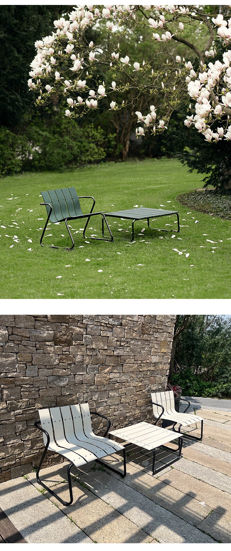 야외 레저 강력한 산업적인 야외 안뜰 빌라 밀크티 숍 카페 발코니 테이블과 의자 세트 조합 알루미늄