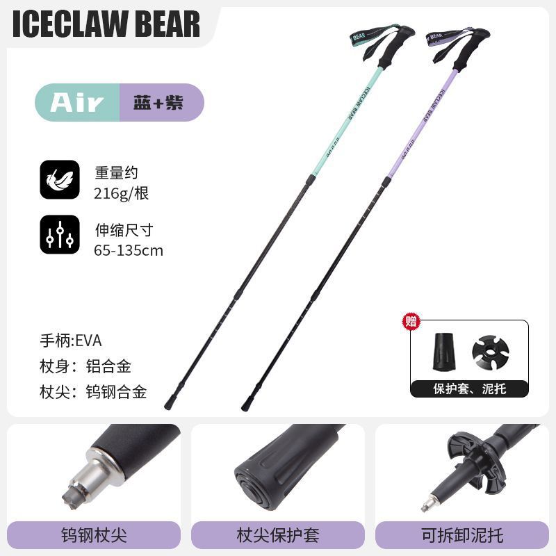 내부 및 외부 잠금 장치가 있는 야외 트레킹 스틱, 초경량 텔레스코픽 지팡이, 전문 등산 장비 스틱, 남성용 및 여성용 어린이용 스틱, 하이킹 지팡이