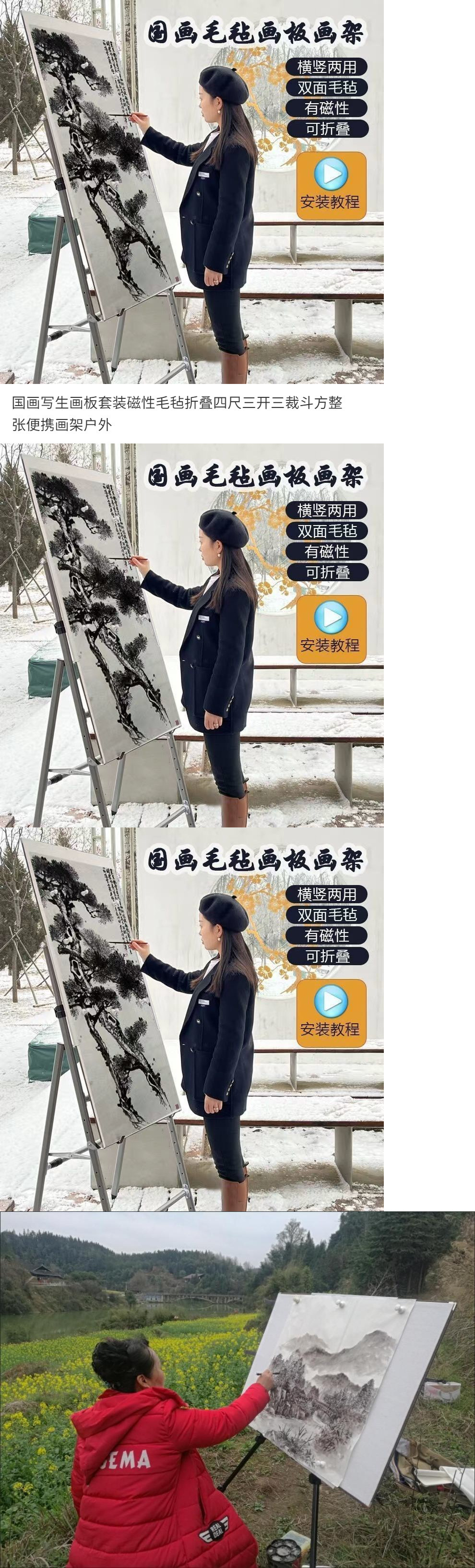 휴대용 이젤 세트 133.2cm 중국어 그림 전체 접이식 3컷 야외 자석 스케치 보드 사각형 3개의 개방형 펠트스토어 가기