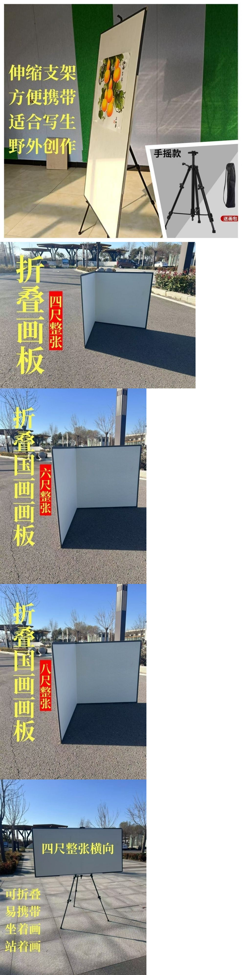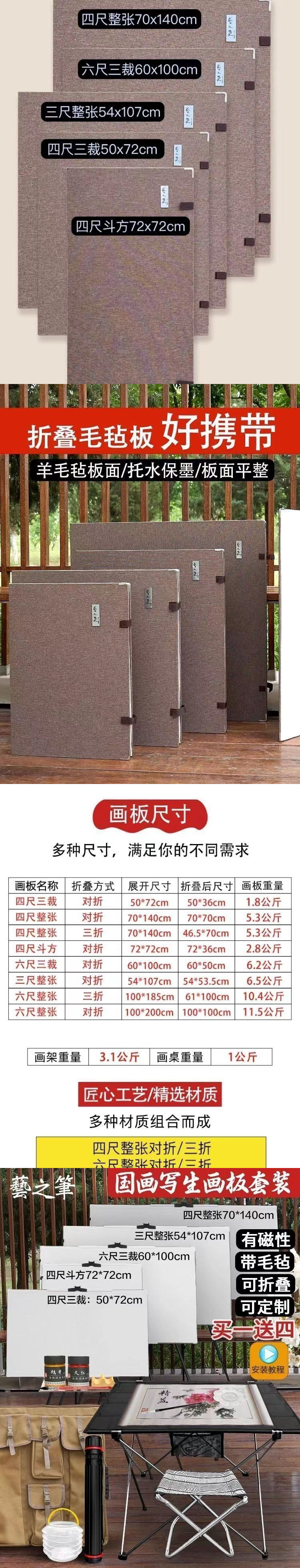 • 접이식 화판 1개 + 자석 + 카드 슬롯 + 4각 이젤 포함 - 133.2cm 3개 개구부(51*72cm) - 반으로 접힘