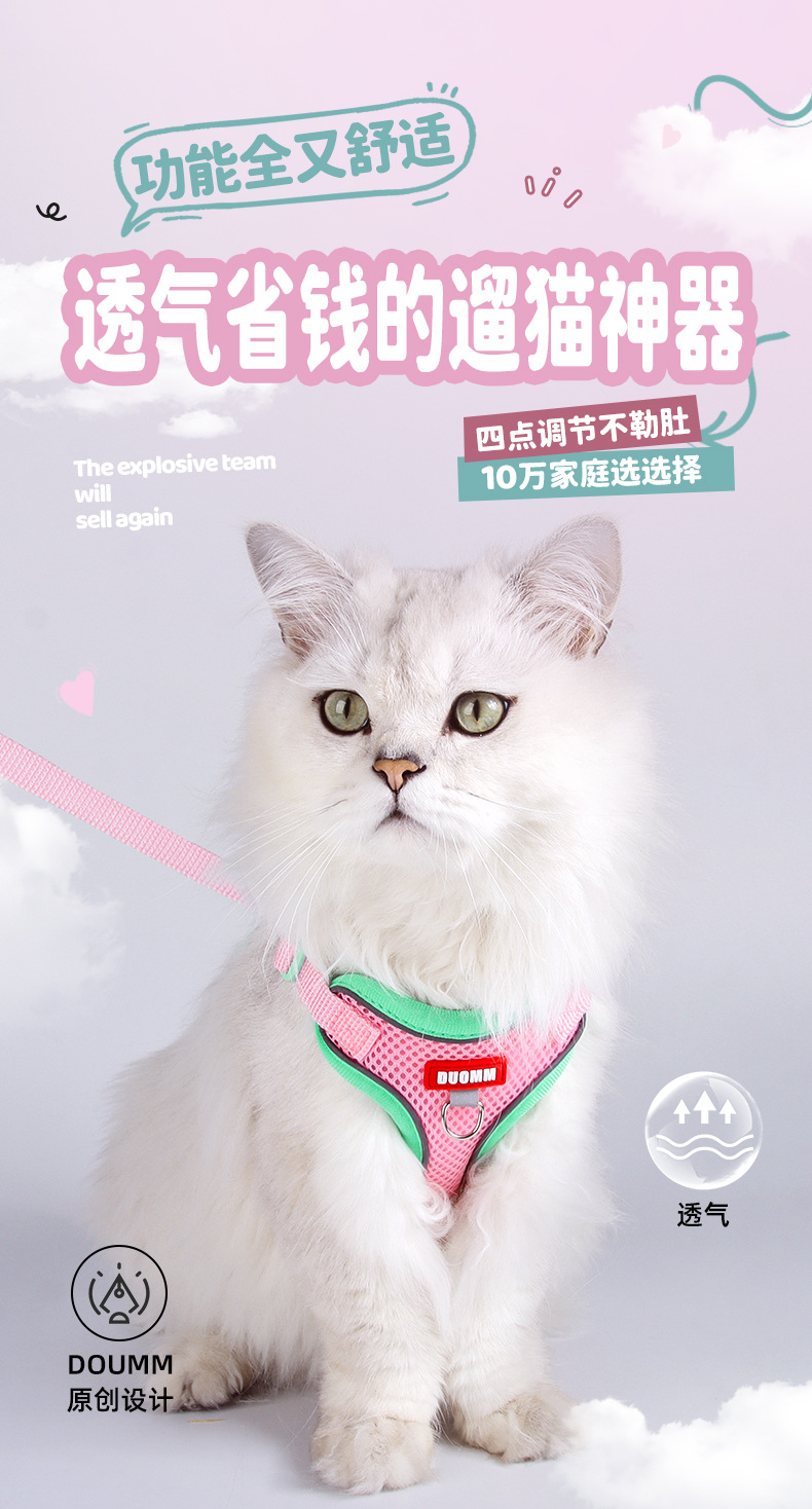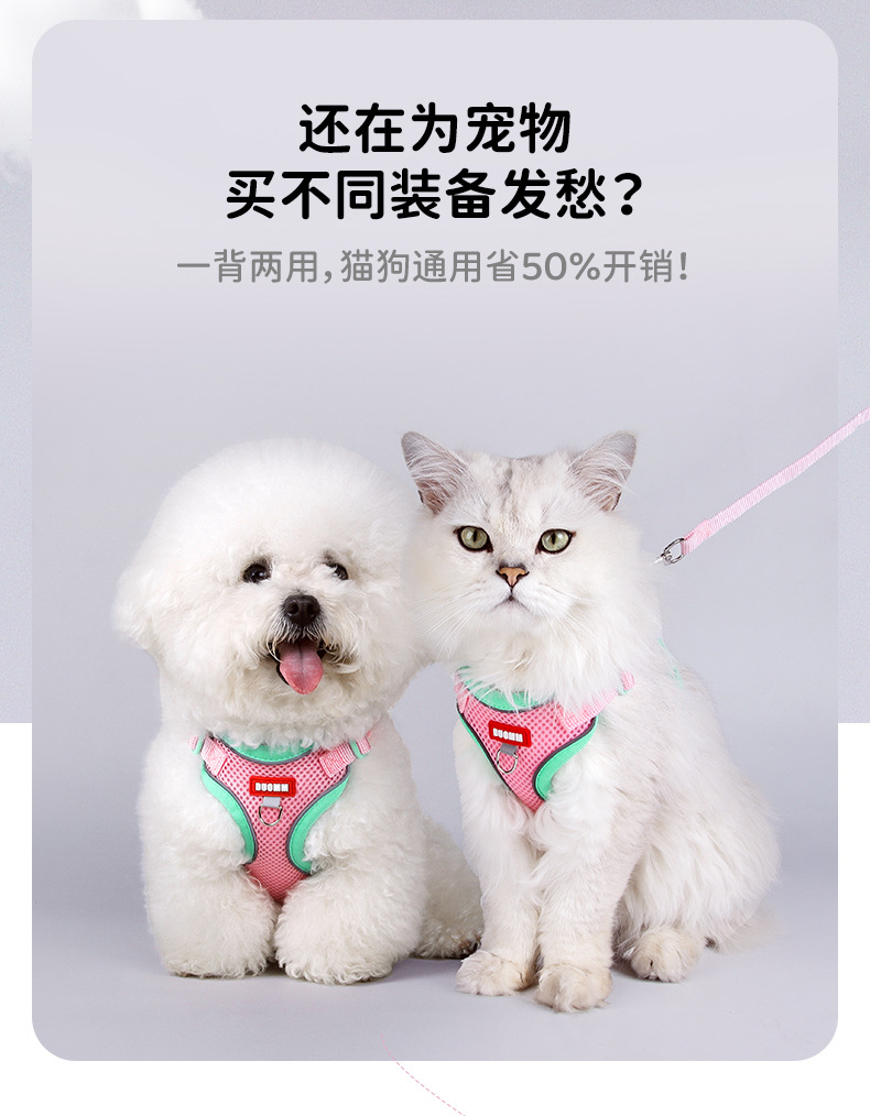 국경을 넘는 클래식 대비 색상 업그레이드된 애완 동물 견인 로프 이중층 메쉬 부드럽고 편안하며 걸이 가능한 유명 브랜드 고양이 견인 로프